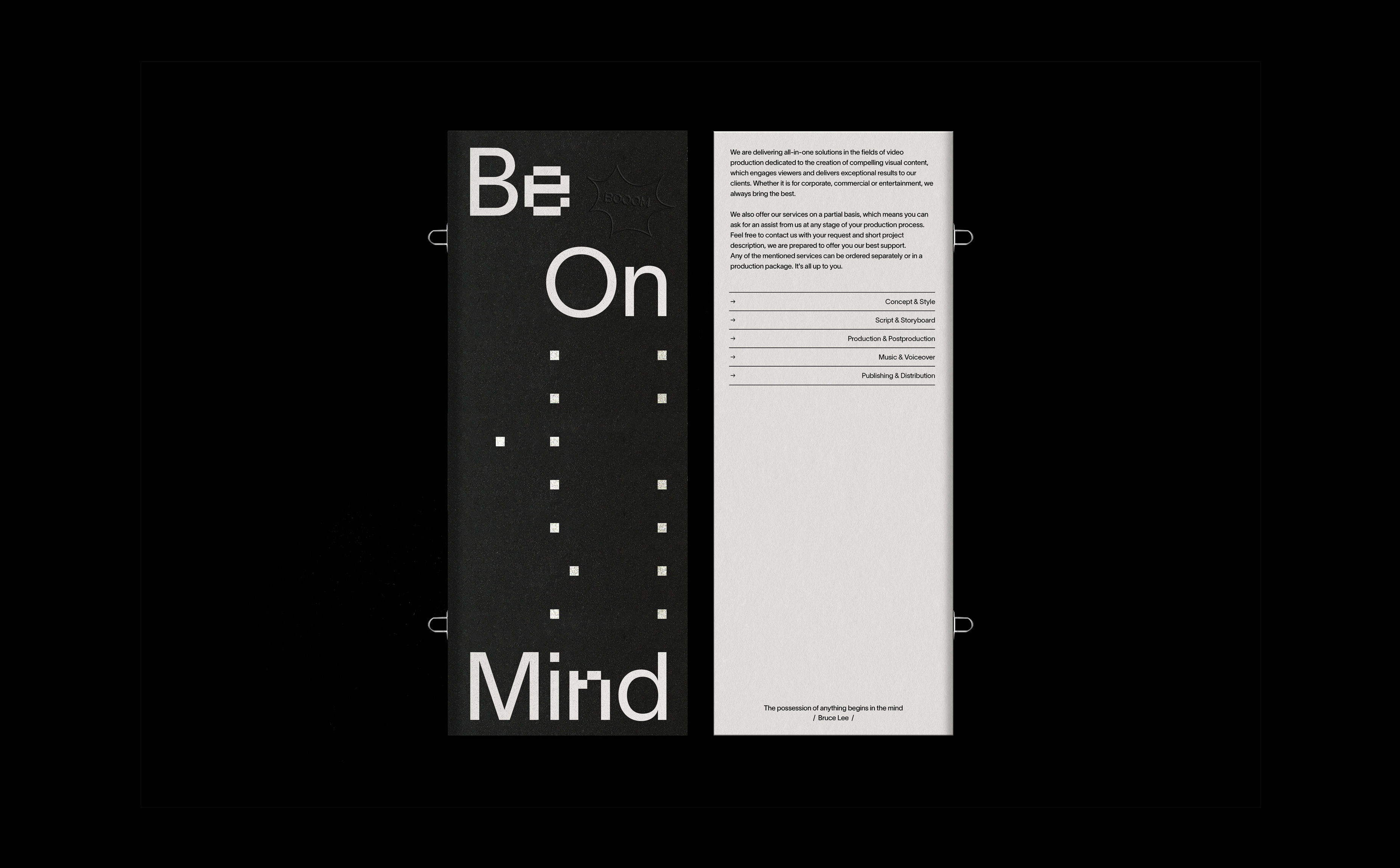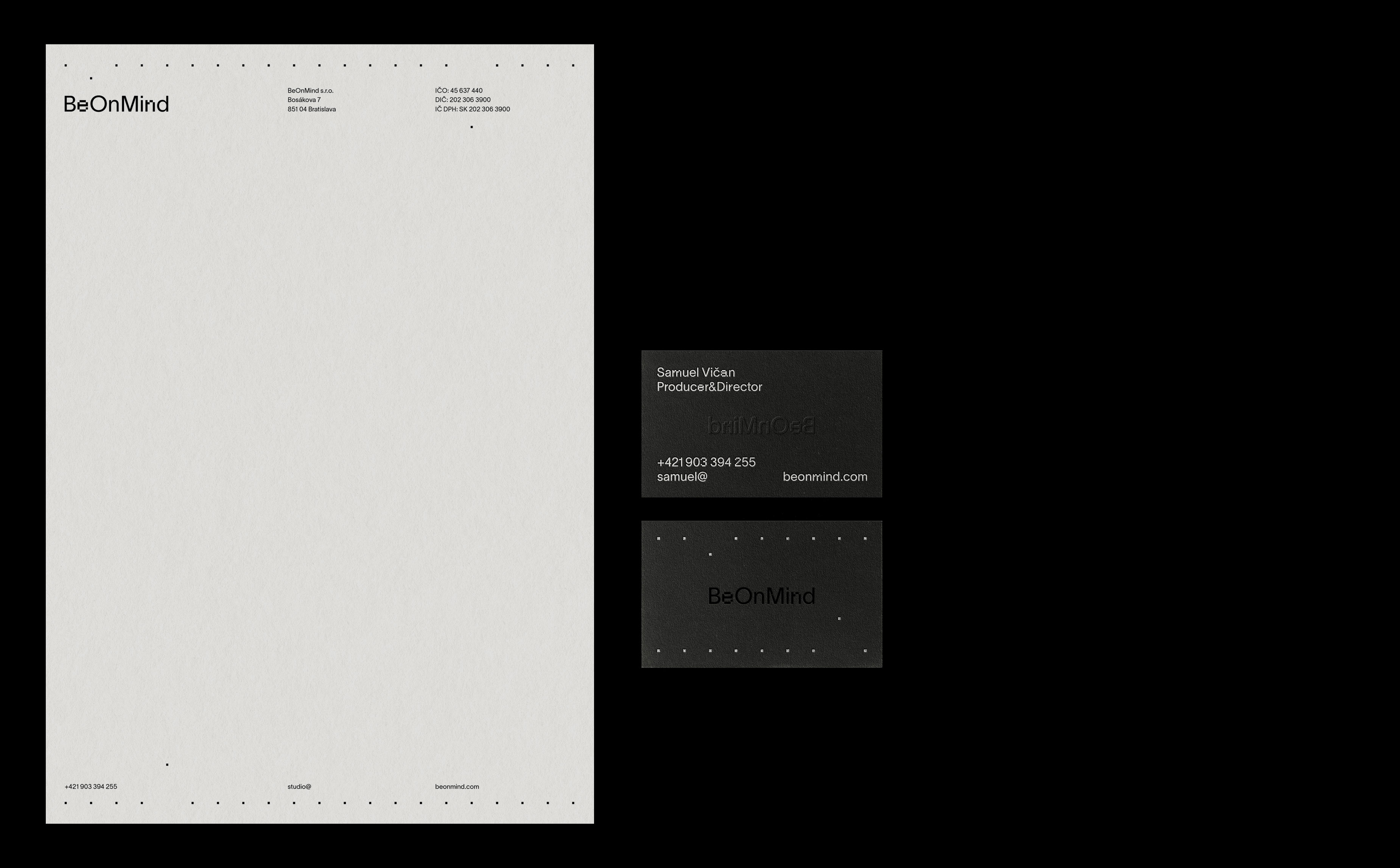 BeOnMind is a movie and production company based in Bratislava. The company started its existence in 2010 and after 10 years, it was about time for a rebranding. The idea combines pixels and the filmstrip motive – emphasizing the intertwining of analogue and digital. The pixels in the filmstrip are sometimes deliberately misaligned – a purposeful moment designed to surprise. Just like in a real movie.