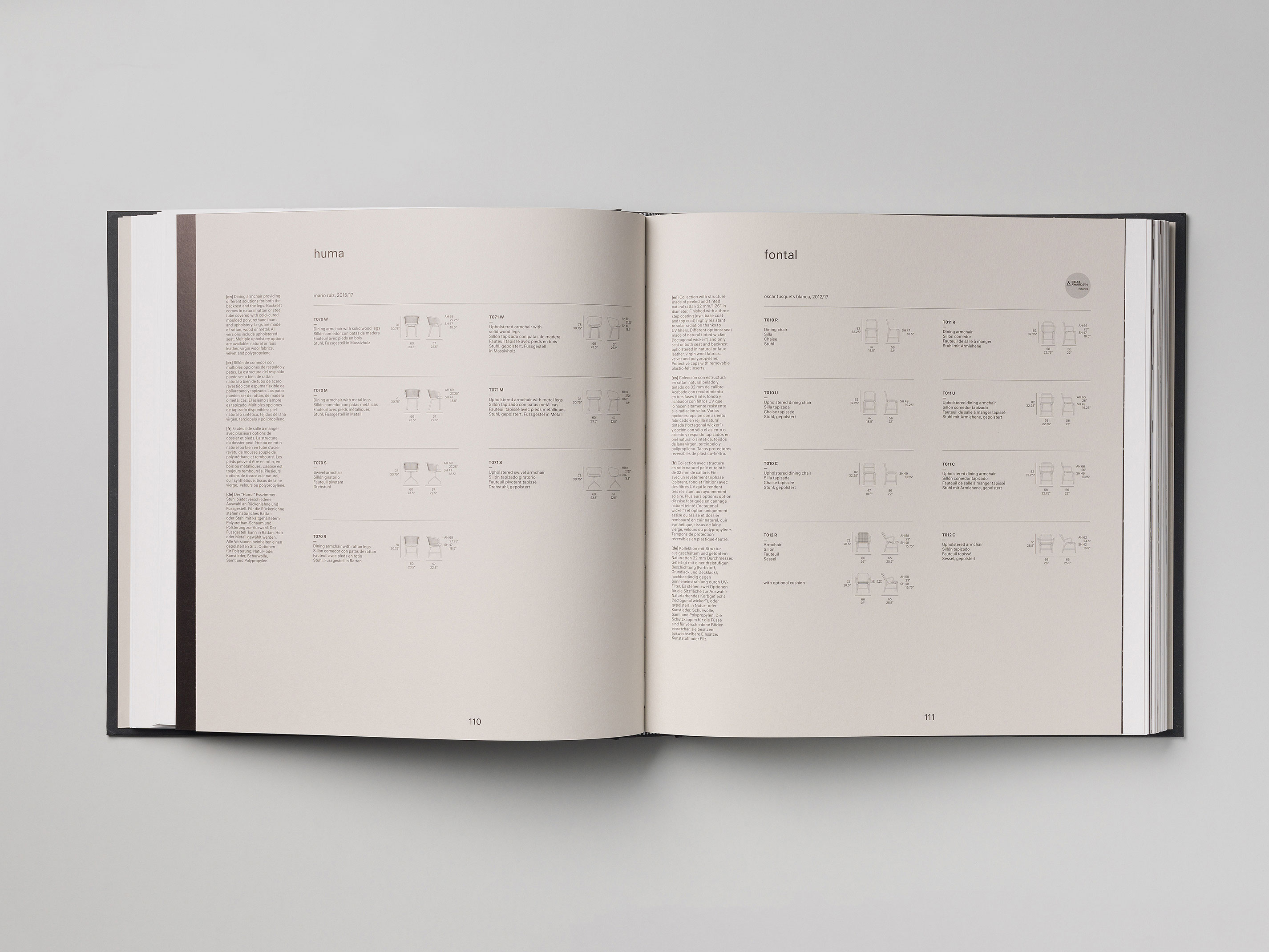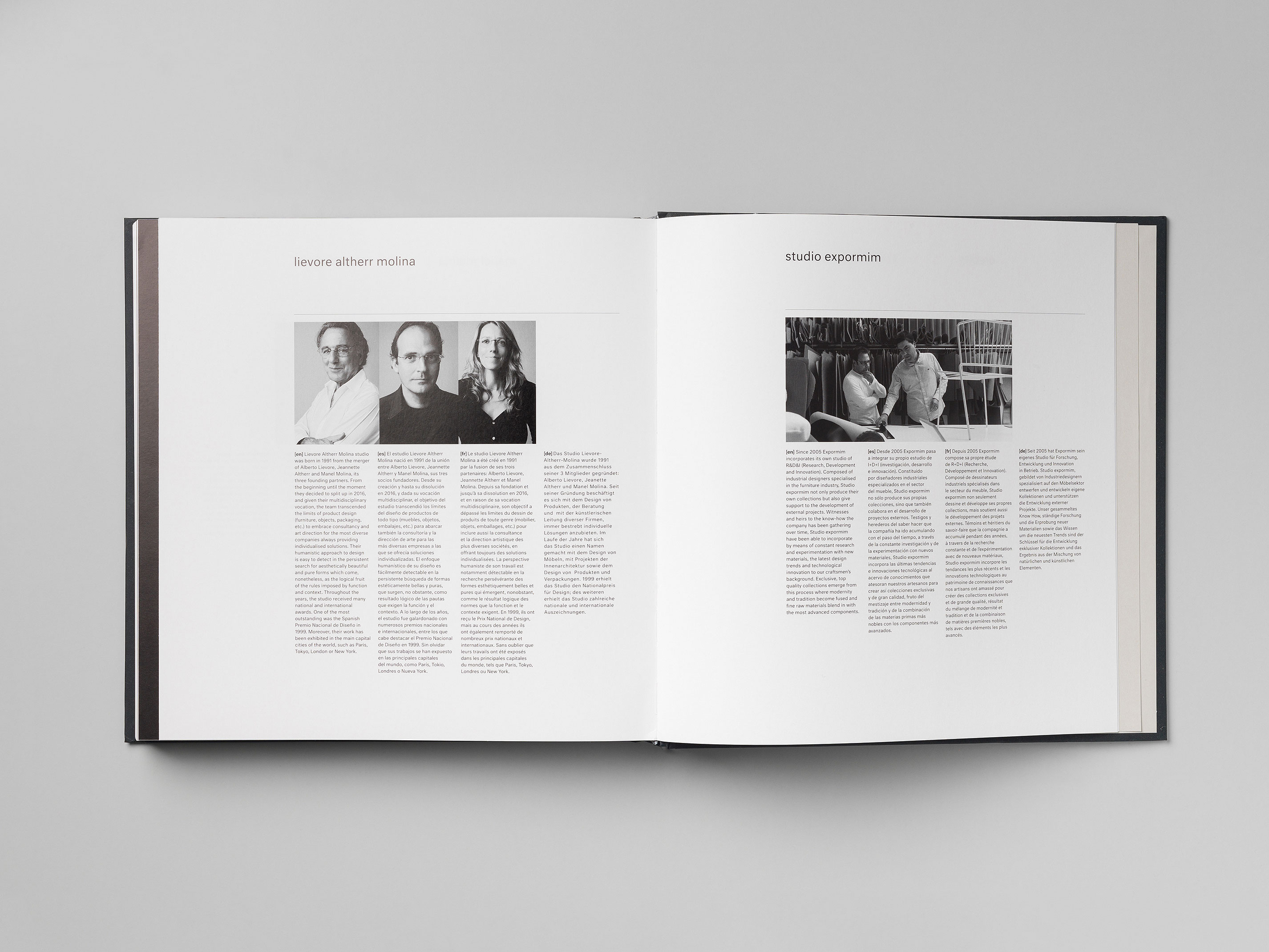 Product catalog for Expormim, a leading European company specialized in indoor and outdoor rattan furniture. The design of the publication is based on simplicity, order and detail, both in the use of typography as well as in the system of physically structuring and ordering the content.