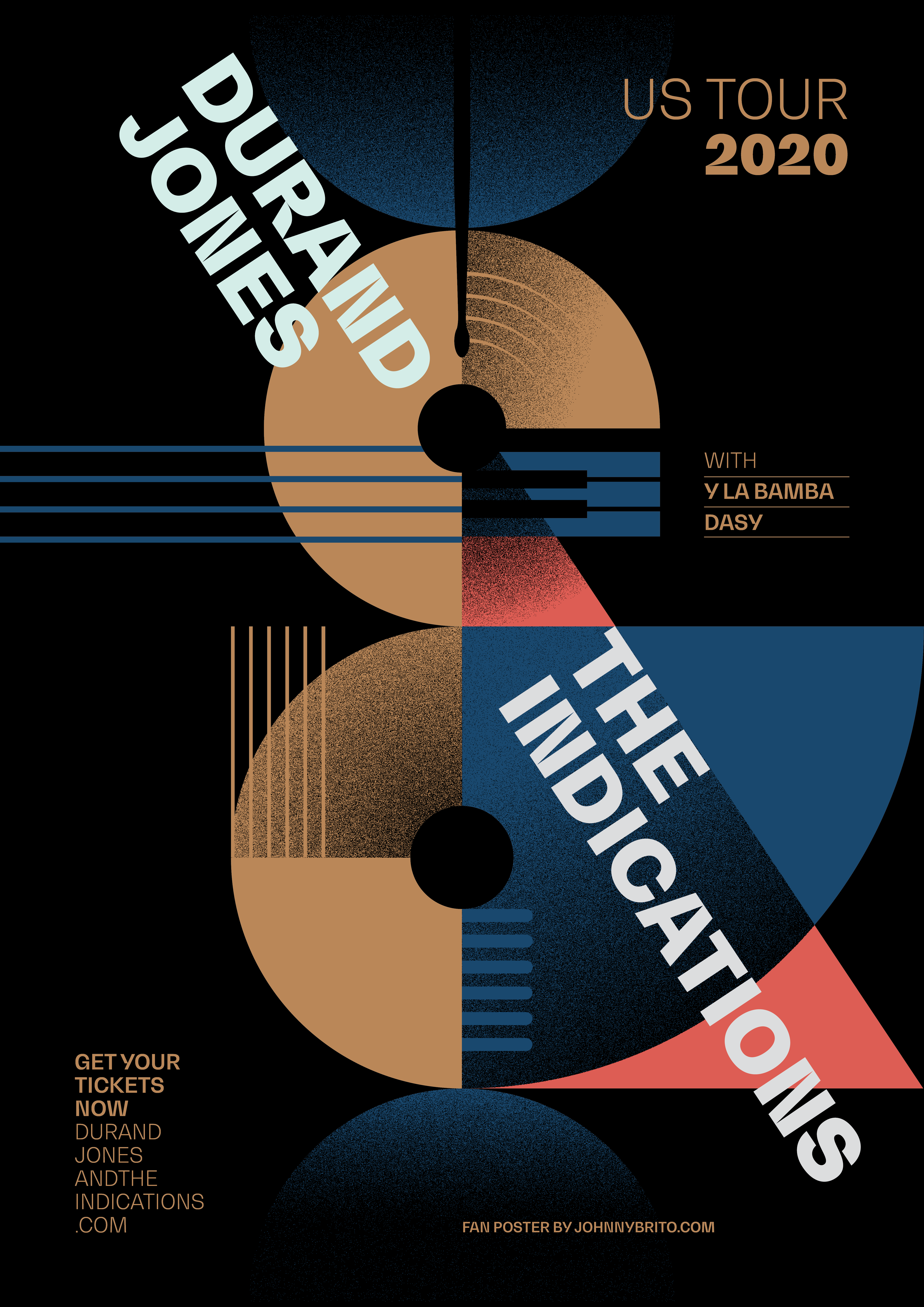 Just a Sunday night creative exercise listening to one of my faves, Durand Jones & The Indications. The central figure of the poster is the ampersand, present in the name of the band, in addition to referring to the other two bands that will accompany them on this tour.