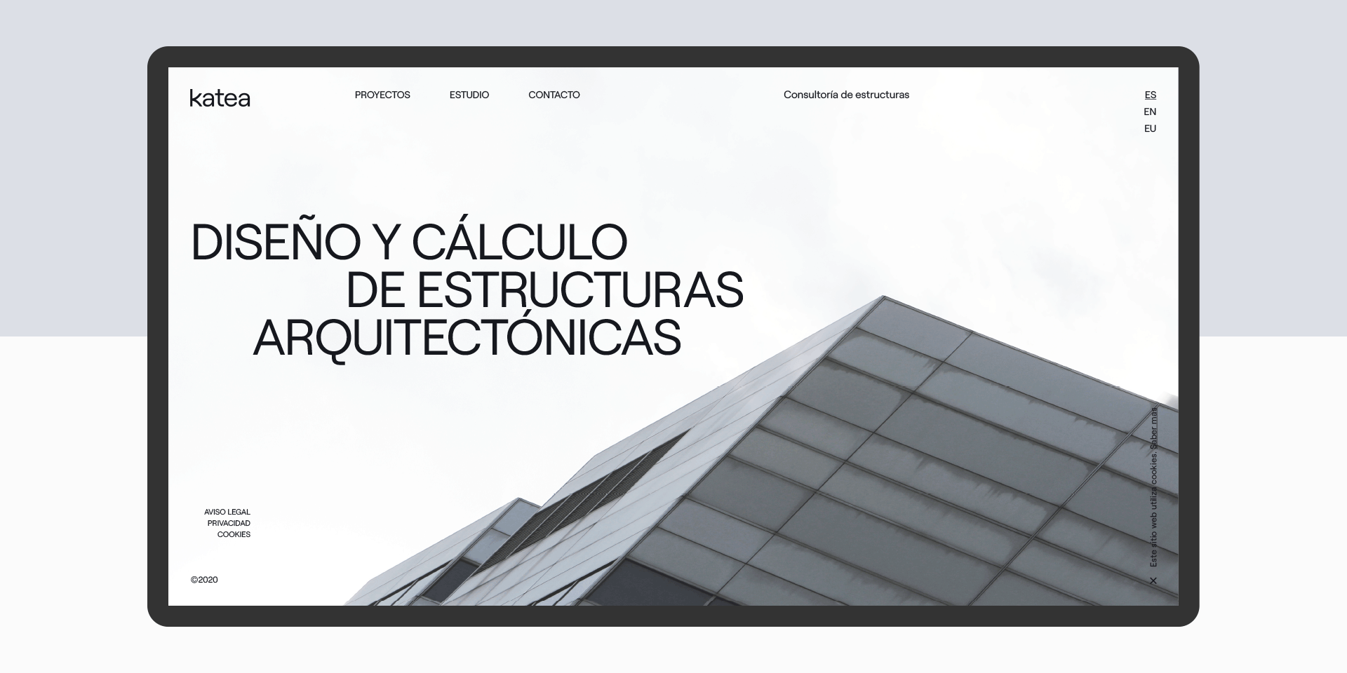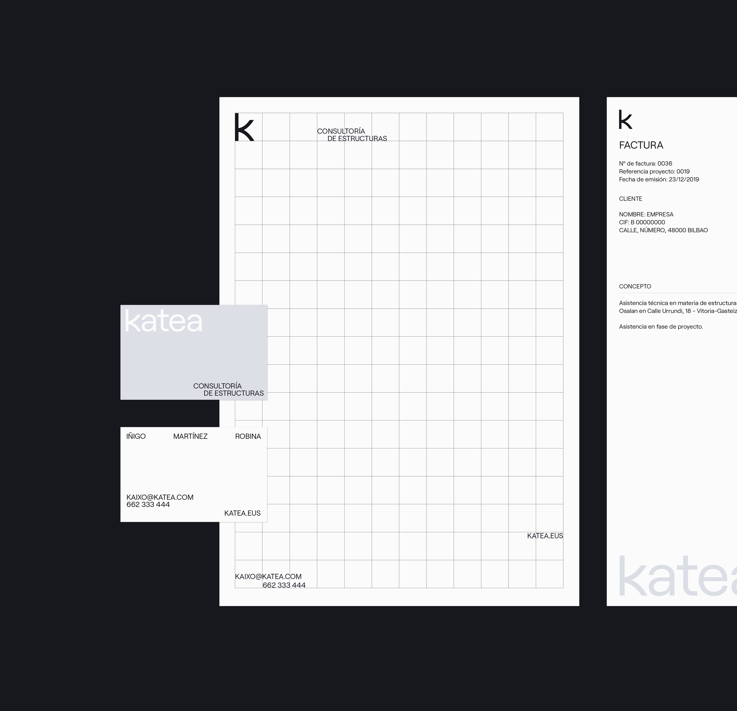 Katea is a consultancy for architectural structures. They needed the complete design of their brand and website. The aim was to create a simple, clear and consistent brand according with its values. The name of the brand comes from the catenary, which is the ideal curve generated by a chain suspended from both ends. The arch it generates is an optimal structure in architecture and widely used by great geniuses like Gaudí.