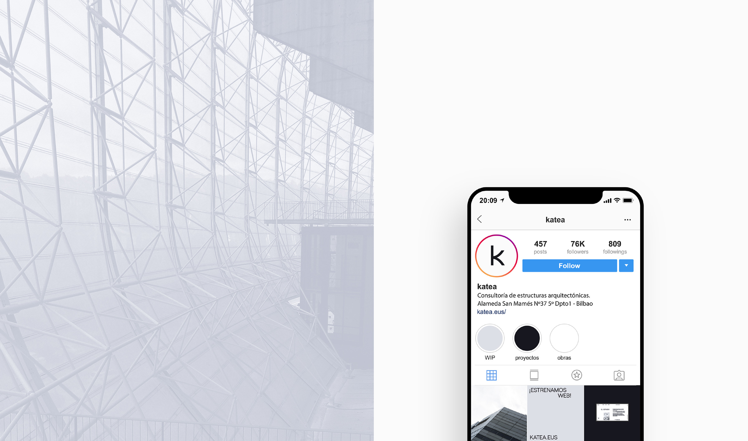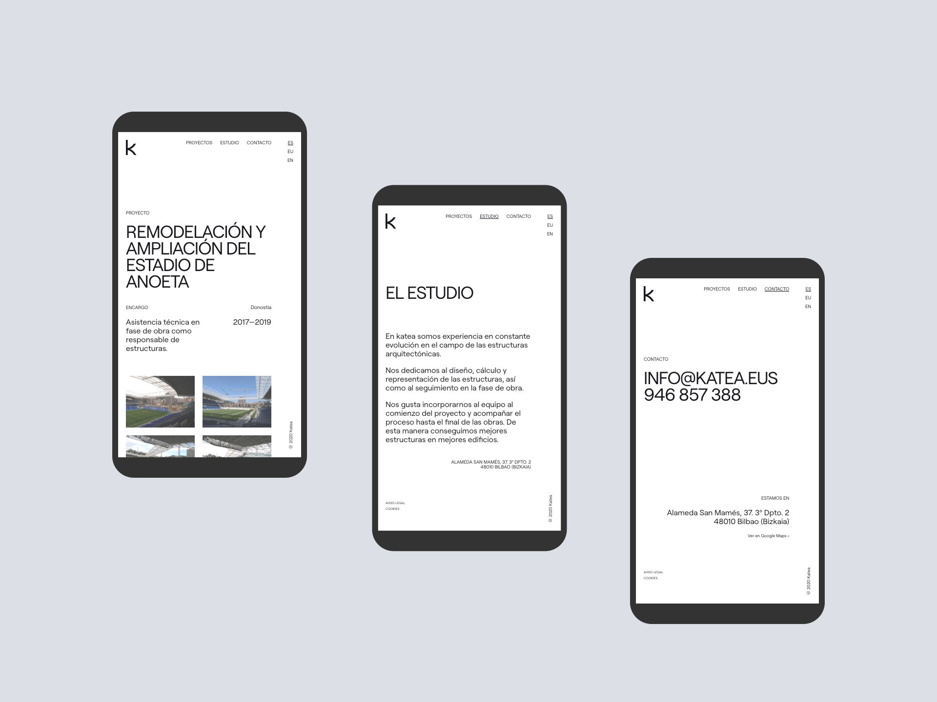 For the logo, we redesigned the letter K from two catenary curves. The color palette is composed of neutral and timeless colors, present in many materials of architectural structures. The rest of the identity is based on the composition of the text, generating different structures from the game that the alignment of paragraphs and lines of text generates, to reinforce the design concept of complex architectural structures.