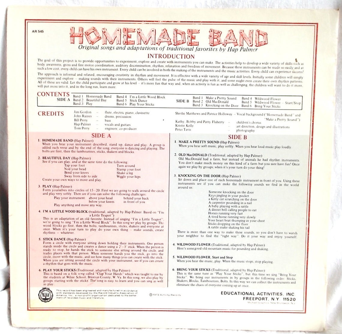 Hap Palmer’s name is set in Stymie. Born in 1942, the singer/songwriter and teacher from Los Angeles “pioneered the integration of music and movement in the area of early childhood education”. The album was released by Activity Records in 1973 and distributed by Educational Activities, Inc. Art direction, illustration, design by Kristie Kelly, with photography by Peter Travis.