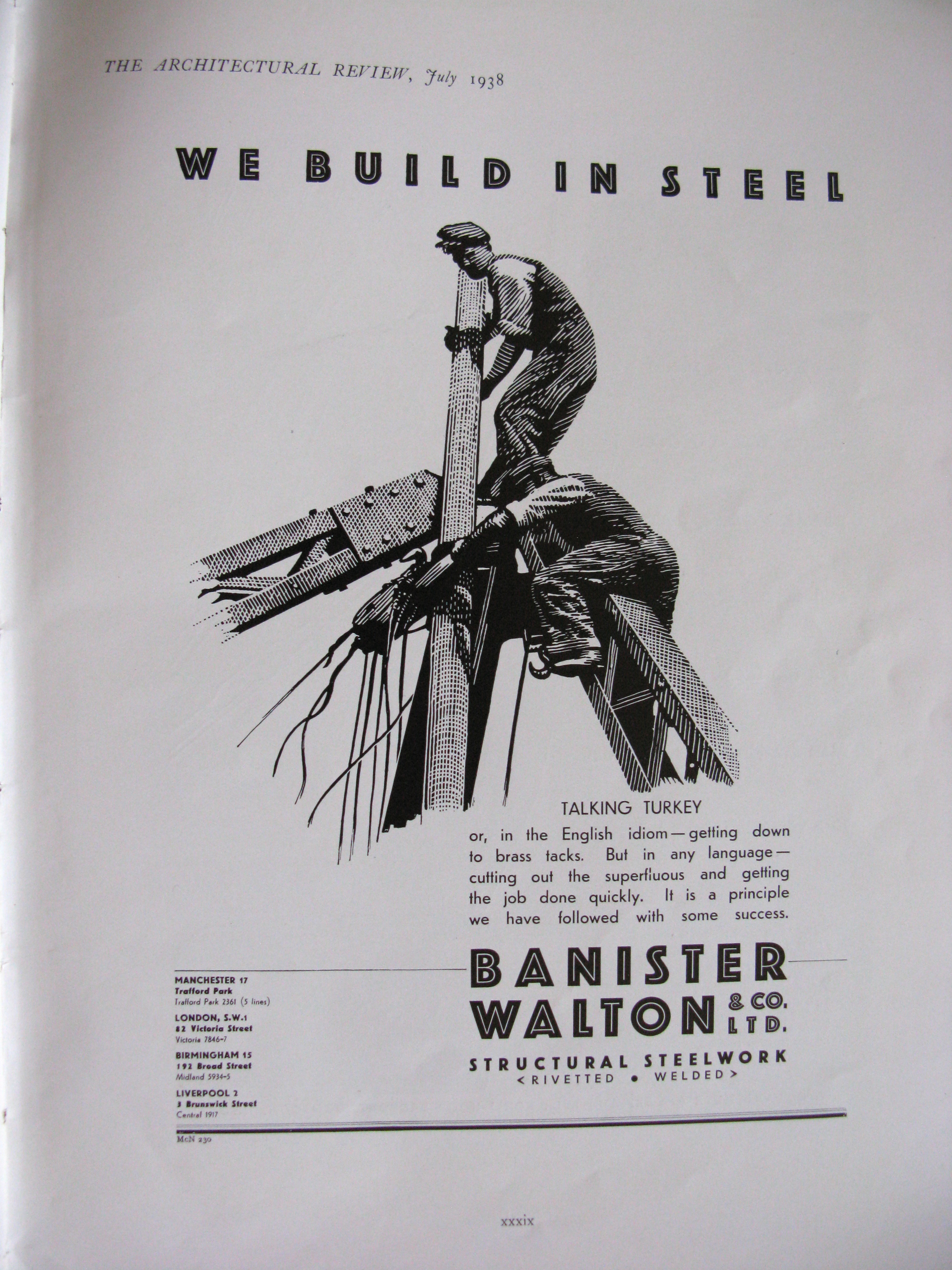 This series of similar adverts was issued in the mid-20th century. Banister, Walton & Co. Ltd. had addresses in London, Manchester & Birmingham. I’m inclined to think that Trafford Park was the centre of the company’s works.