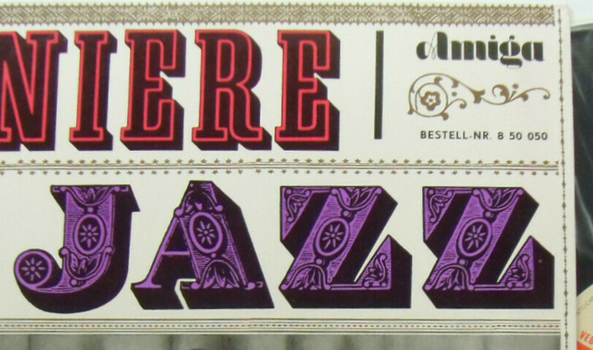 A Lettera double feature for the cover of a jazz compilation released by (East) German Amiga Records in 1969. Christoph Ehbets (1935–1992) was an avid user of the alphabet source books by Swiss publisher Niggli. Forest House was one of his favorites and can be found in many of the covers by the designer from Berlin-Köpenick. The condensed slab serif with contour and shadow is part of a series of decorated capital alphabets drawn by Paul Sollberger, a graphic artist from Bern. For “JAZZ”, Ehbets switched to another, more festive design: Macdonald is an ornamented fat face that probably goes back to the 1820s or 1830s. The two shaded all-caps alphabets are both reproduced in the first volume of Lettera from 1954 and are here used with a color fill.