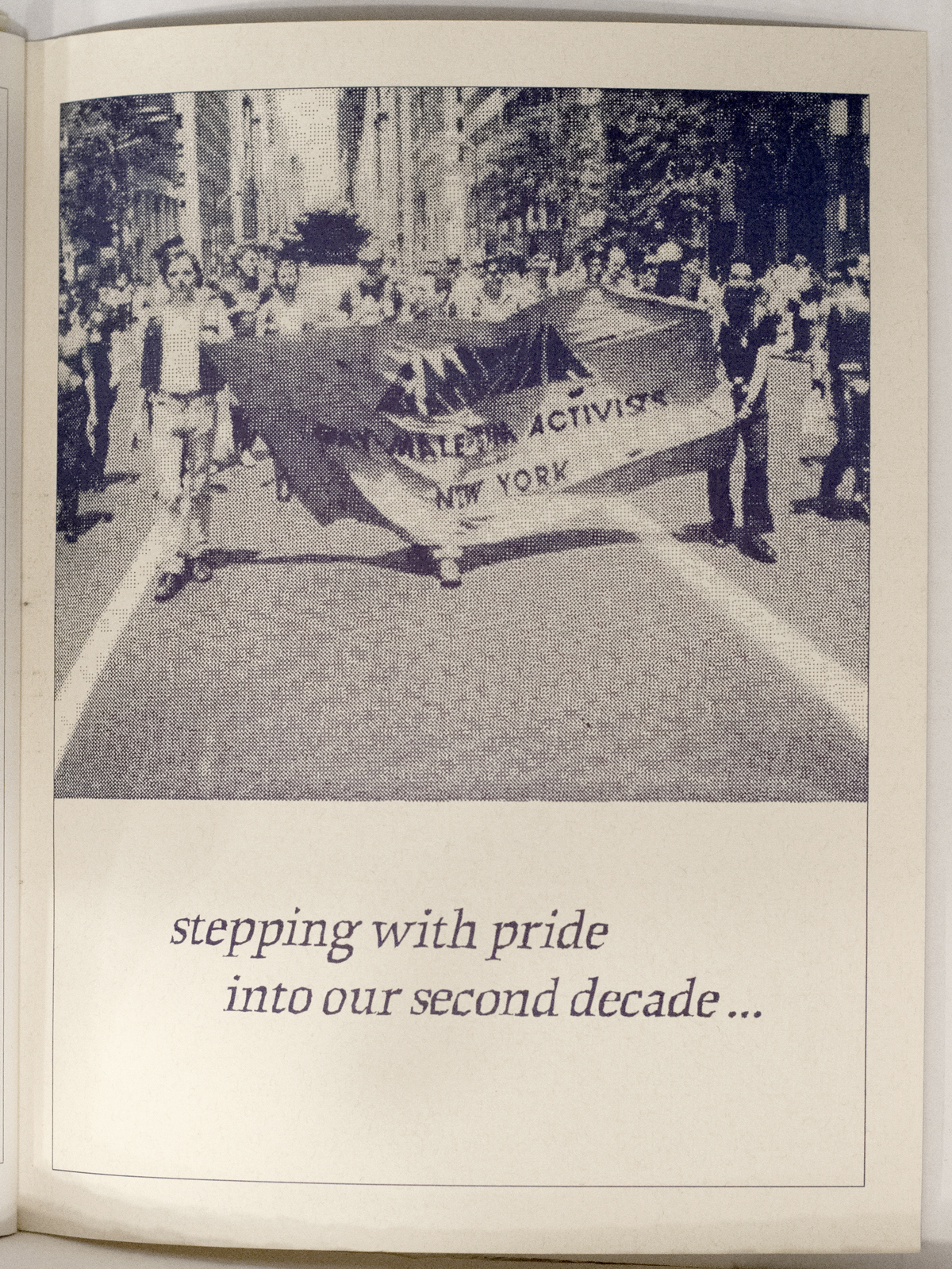 No graphic designer is noted for this anniversary program booklet for the New York City-based GMSMA, which is no longer active. [Edit: The designer has been identified as Thor Stockman.]