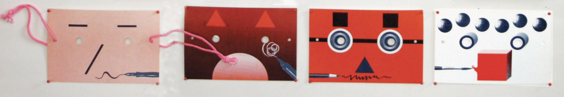 A production note: the poster was folded into twenty panels, and then two 1/4″ holes were drilled through the folded poster. The holes serve the direct and obvious purpose of looking.”
