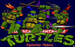 Everyone knows the Teenage Mutant Ninja Turtles! Well, this computer game for PC (MS-DOS) released in 1991 uses the Cartoon 12 for the “Manhattan Missions” part of the logo on the title screen. It reappears on the high score list as well, where it is used alongside a yet unidentified pixel font that is used throughout the game.