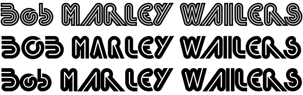 The biline/inline letterforms on the concert poster come from a rarely seen typeface. Barrio was carried as rubdown type by Zipatone, a company based in Hillside, Illinois. It’s shown in their catalogs from 1974 and 1976 as an all-caps design.