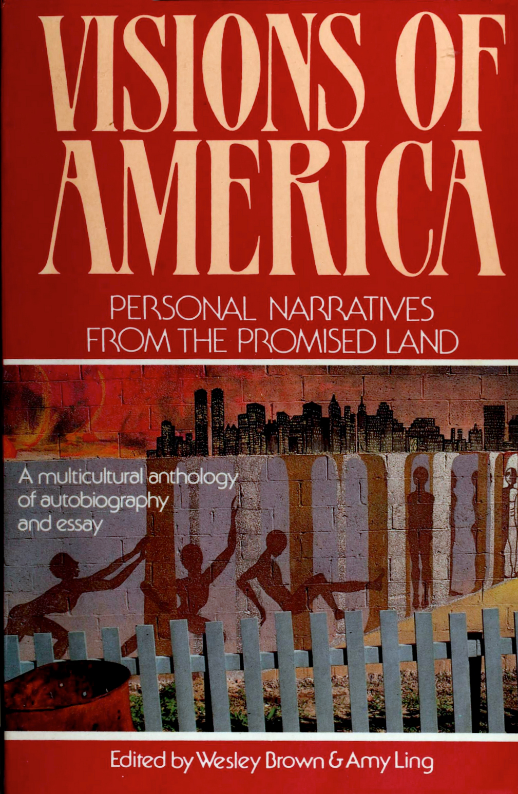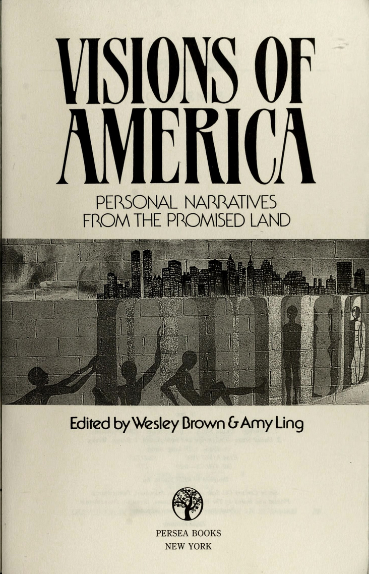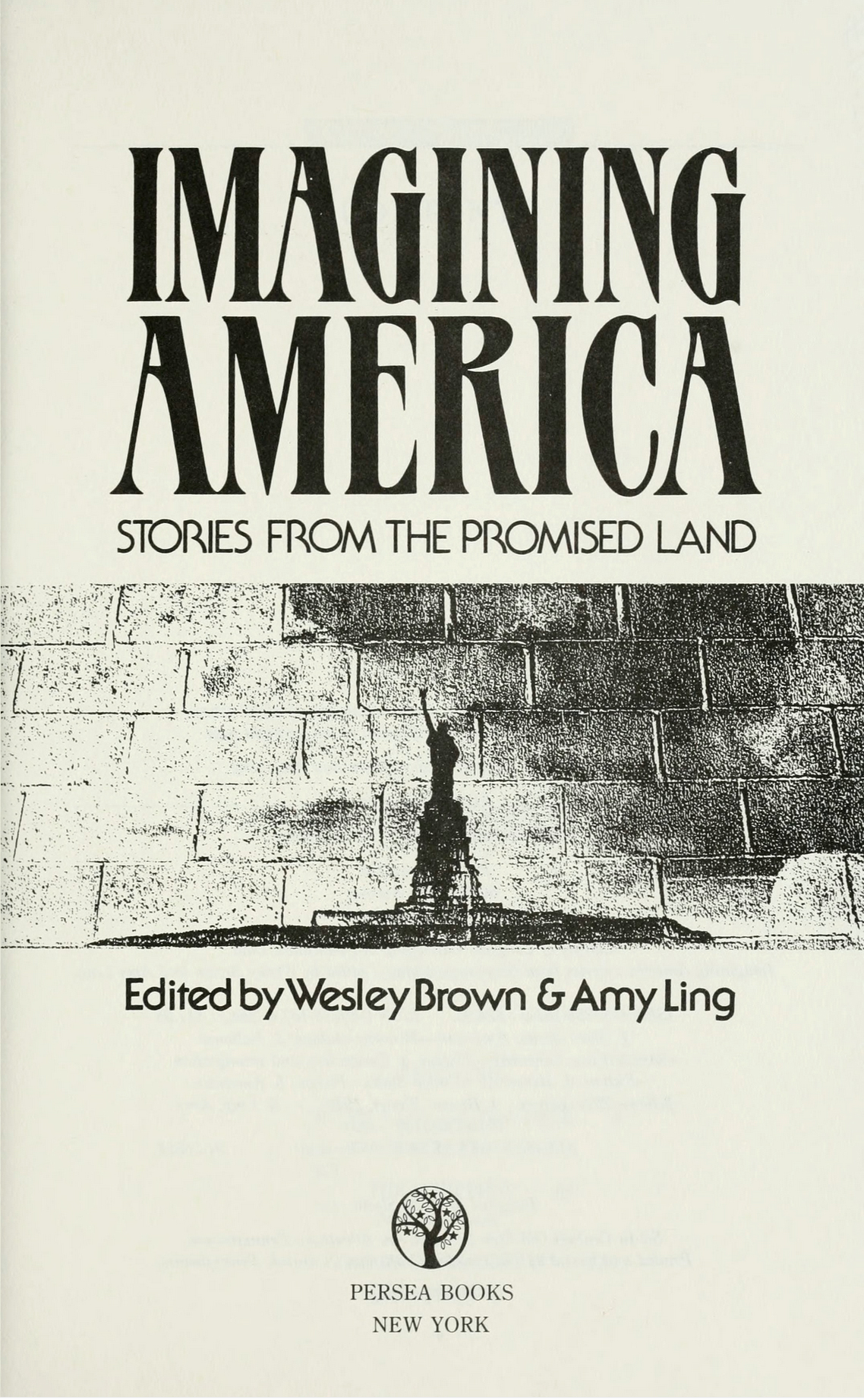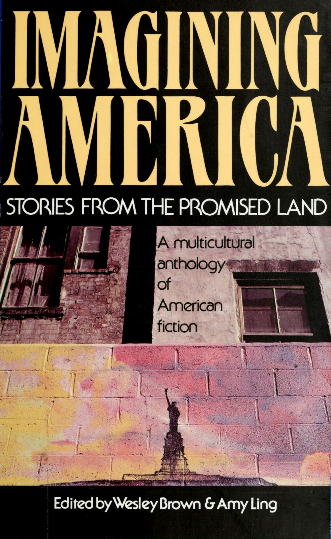 Cover and title page design for Imagining America. Stories from the Promised Land (1991), a multicultural anthology of American fiction edited by Wesley Brown & Amy Ling, with stories written by authors of diverse cultural backgrounds. The same typography was also used for the non-fiction companion, Visions of America. Personal Narratives from the Promised Land (1993).