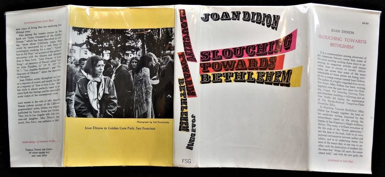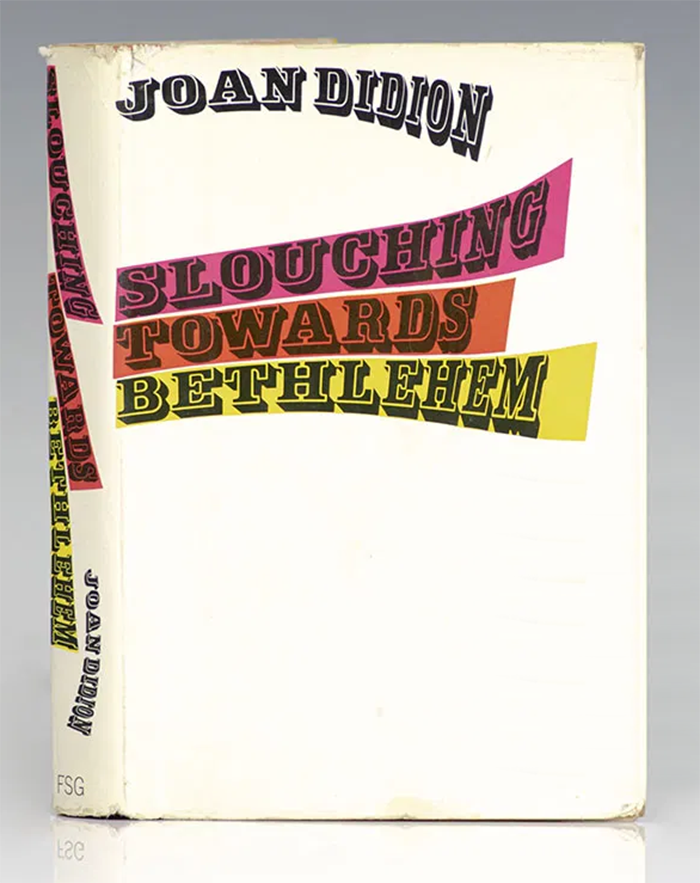 Published in 1968, Slouching Towards Bethlehem is Joan Didion’s first work of nonfiction. Titled after a line in W.B. Yeat’s poem “The Second Coming”, the collection of essays originally written for magazines is about her experiences in California during the 1960s.