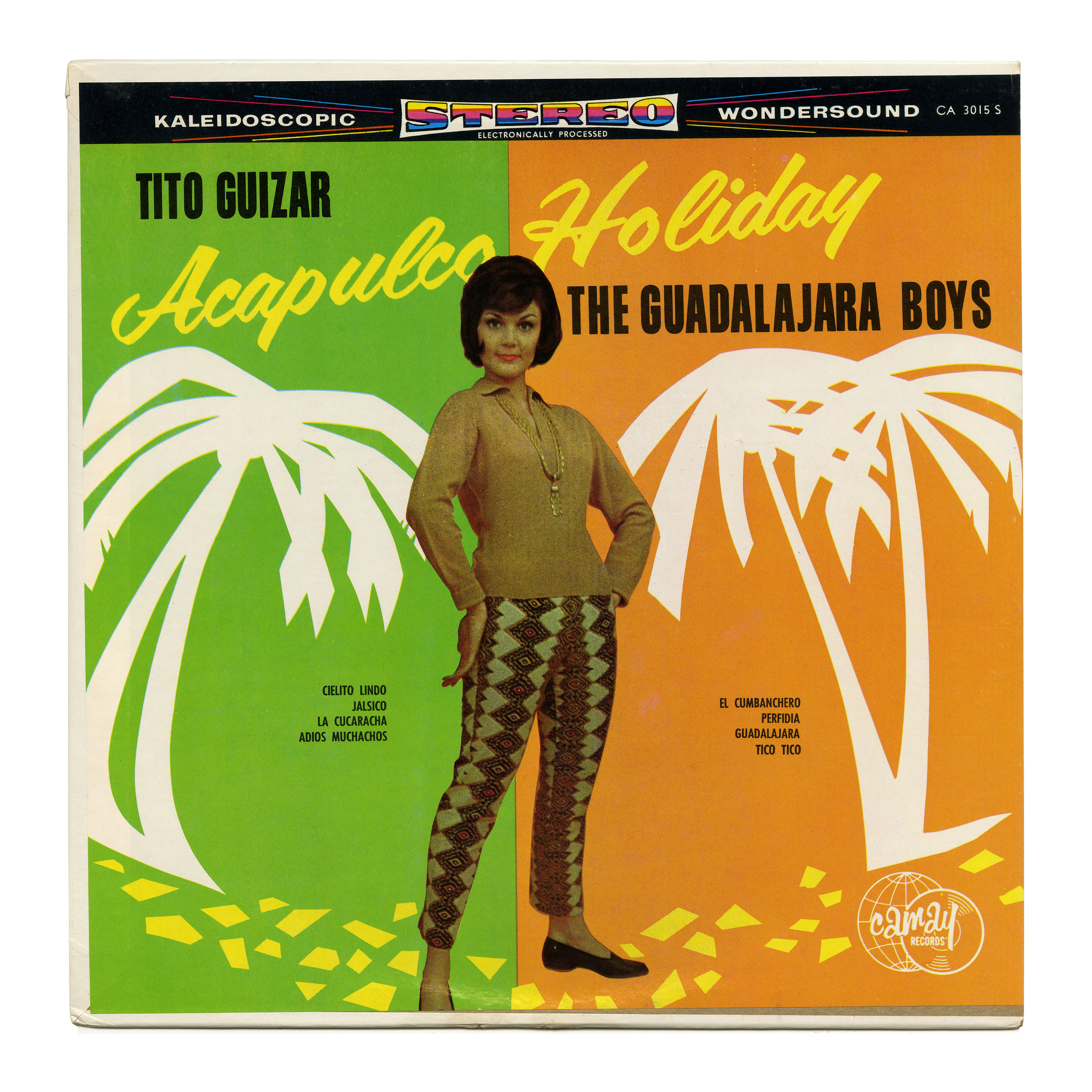 LaSalle and Gaucho on the cover of a record by Mexican singer and actor Tito Guizar and the Guadalajara Boys. Released on Camay Records, a NYC-based budget label that was active in the late 1950s and early 1960s. “Kaleidoscopic Wondersound” appears to be in another Filmotype face. The wide neo-grotesk is named Fortune. Track list in all-caps Futura Condensed, with regular-wide Futura for the catalog number.