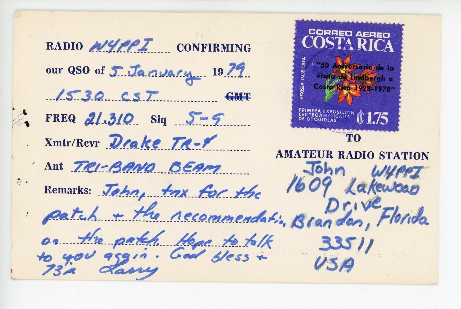 This QSL card features the kräftig and fett weights of Erbar-Grotesk. It documents a contact from 5 January 1979, but it could have conceivably been designed years, or even decades earlier. The call sign seems to mix in glyphs from another heavy sans which, despite the characteristic 2, hasn’t been identified yet.