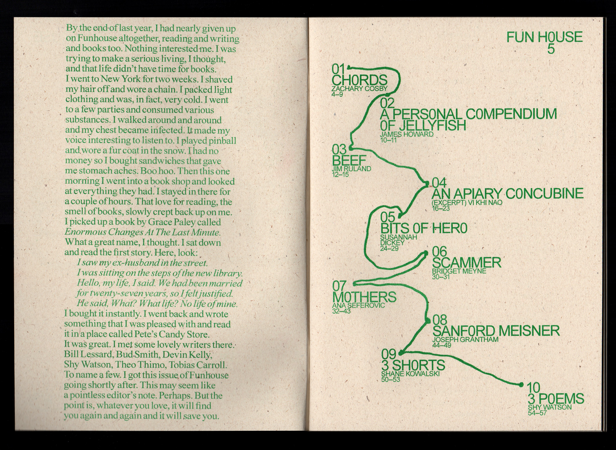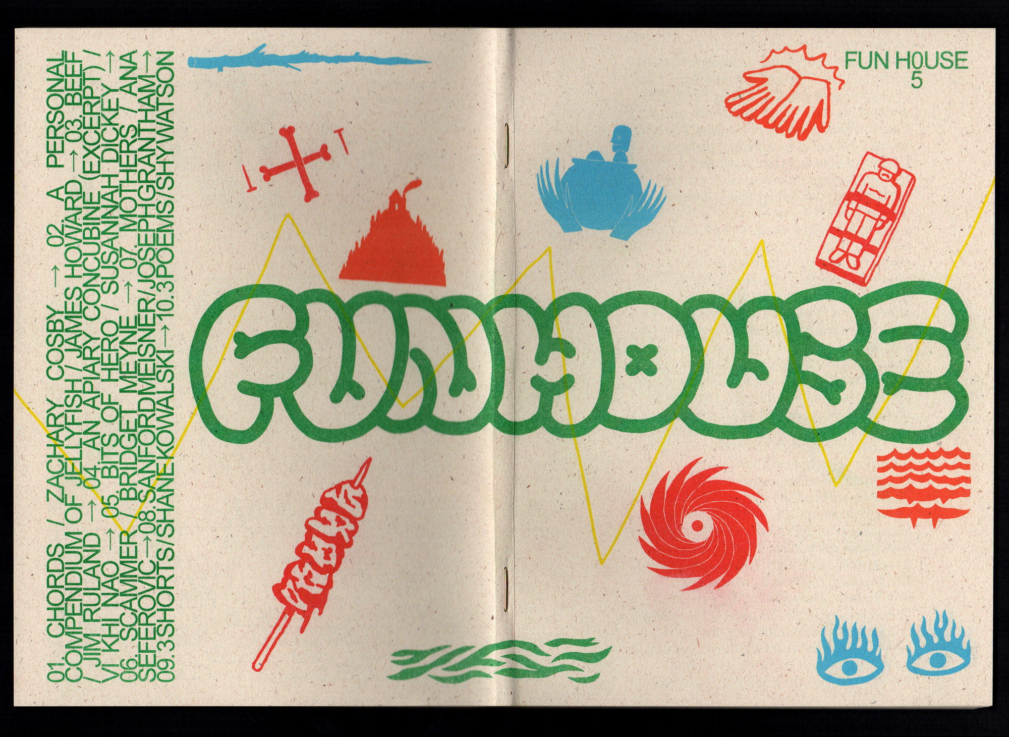Funhouse, available from Stack Magazines, is an illustrated literary magazine with a focus on bodies. Characterised by an odd sense of humour, it has poetry, short stories and comics that look straight into the face of sweaty, rude, and utterly unfiltered human forms.