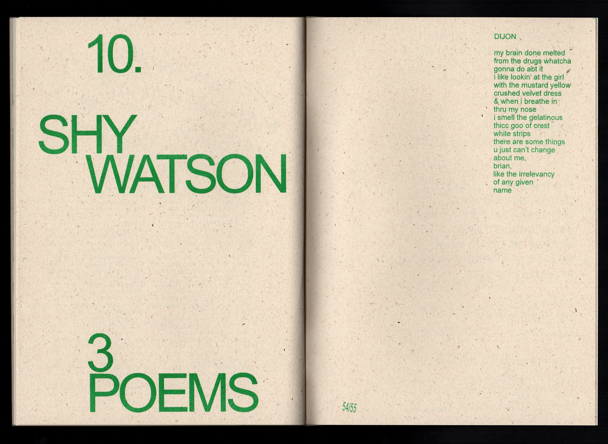 Literary magazine, Risograph printed. Illustrations by Guy Field, edited by Oliver Zarandi and designed by Leo Field. Arial and Times New Roman are used throughout in order to keep the thing down to earth. They are stretched and played with, in order to make them as scary and challenging as some of the stories inside.