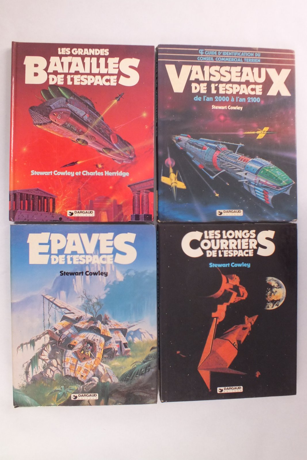 [The idea] initially grew out of Cowley’s desire to gather & showcase the vibrant Sci-Fi art exploding onto bookshelves thru the 1960s & 70s. Modelling the first one after the many volumes of the British comprehensive war reference compilations, JANE’S FIGHTING SHIPS, Cowley always intended to engage a writer to formulate a detailed militaristic future-history around chosen art-pieces, but deadline pressure lead him to do it himself.
