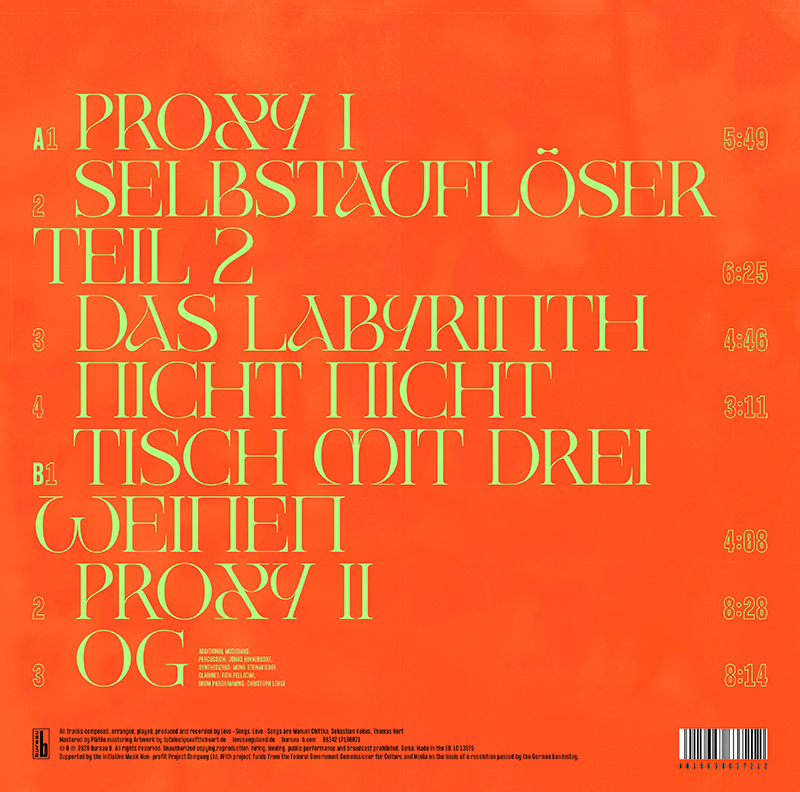 Nicht Nicht is the debut album of Hamburg-based band Love-Songs, and was released on May 22, 2020 on the record label BureauB.