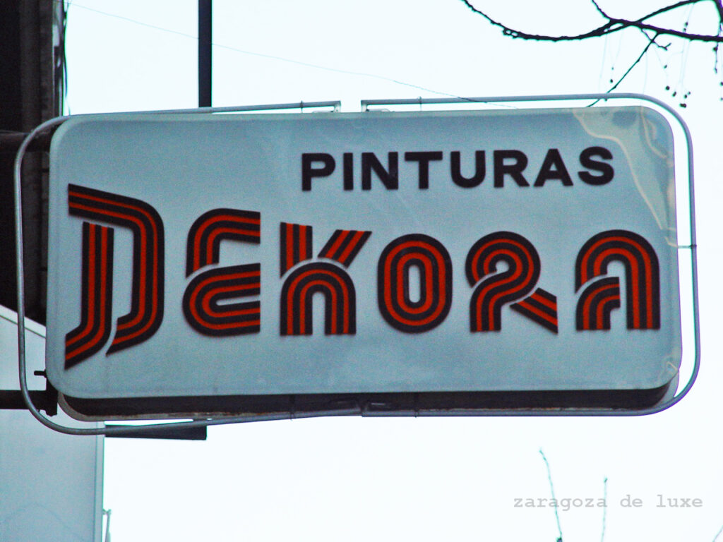 Pinturas Dekora is a paint and decoration store that operated from 1978 to 2020. This year, its owner retired after 42 years in business. The pictures are taken from the Zaragoza de Luxe website which collects signs from the city of Zaragoza, Spain. See the shop front on Google Street View.