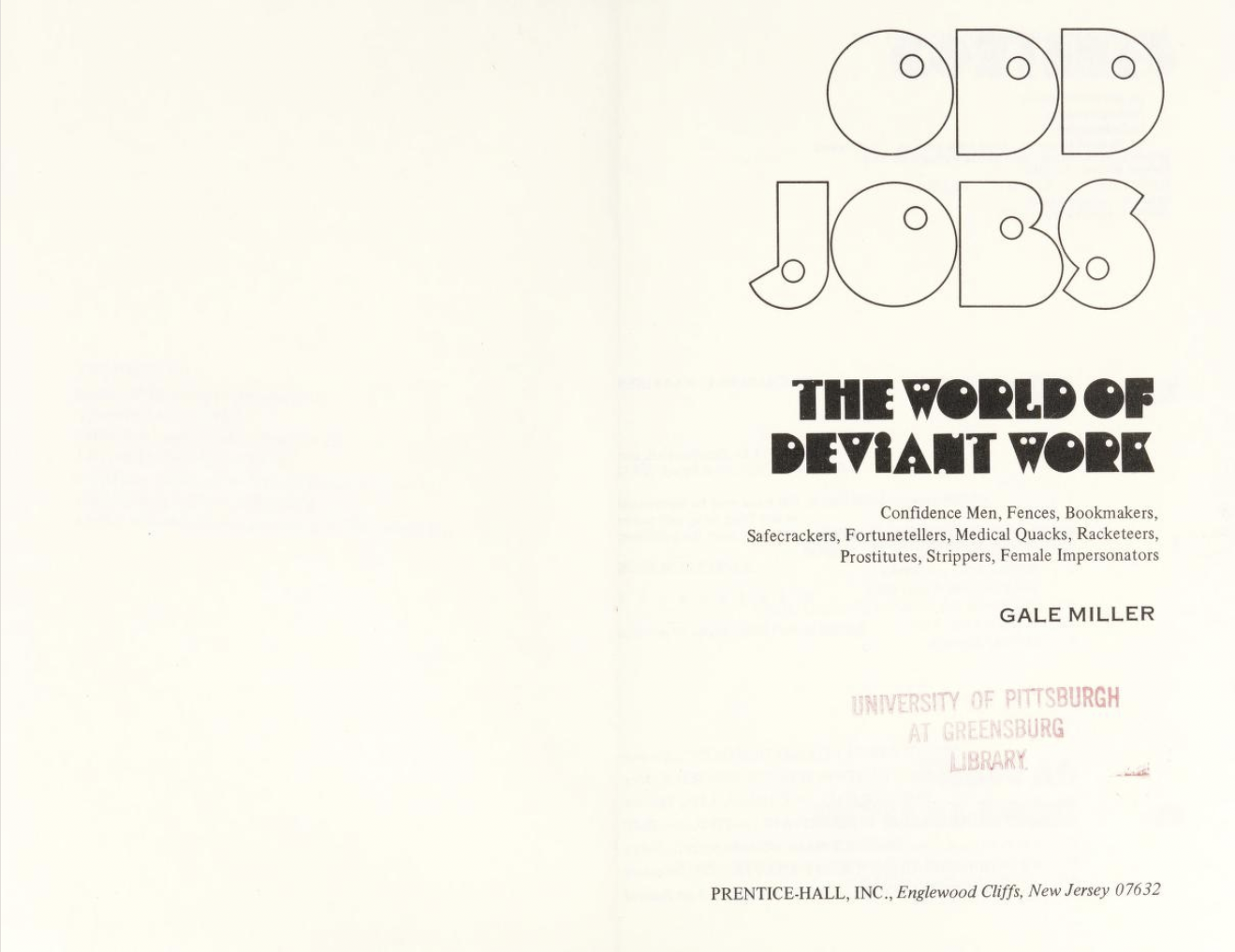 Odd Jobs offers and intriguing look at the working world of con men, extortionists, pimps, prostitutes, strippers, and others who inhabit the “underworld” of work.