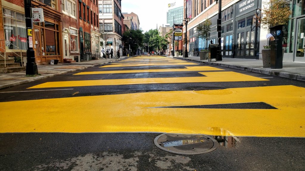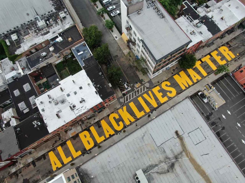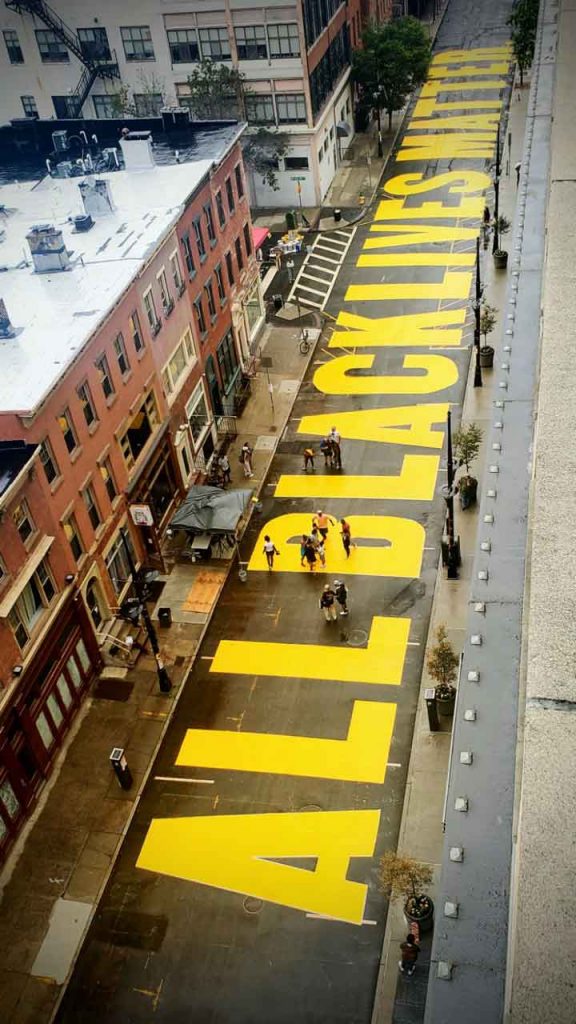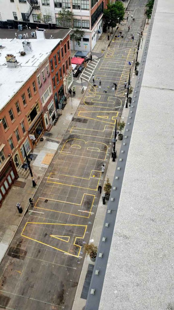 On June 27, 2020, in solidarity with Black Lives Matter and the global call for racial and LGBTQ+ justice, the City of Newark and a unique collaboration of artists, activists and community partners created two massive street murals in Downtown Newark, aka “Murals for Justice Newark”. Nearly 300 students, artists, organizers, and residents helped paint the messages throughout the day, in 2-hour shifts as they practiced social distancing.