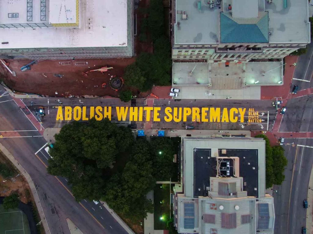 “ABOLISH WHITE SUPREMACY” on Martin Luther King Jr. Boulevard, between the Essex County Courthouse and the Veteran’s Courthouse.