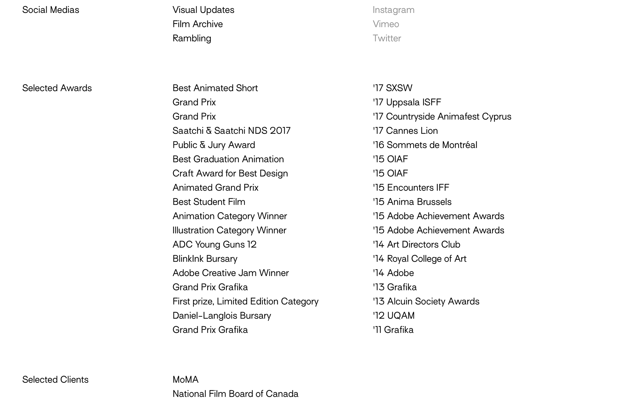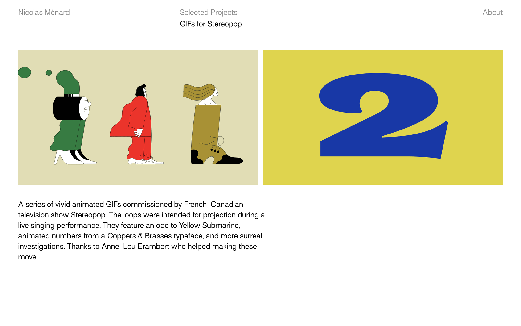 Nicolas’ interest in visual systems is the starting point of his creative investigations. His clear graphic language has transferred to animated short films, commercials, illustrations, posters, and artists’ books.