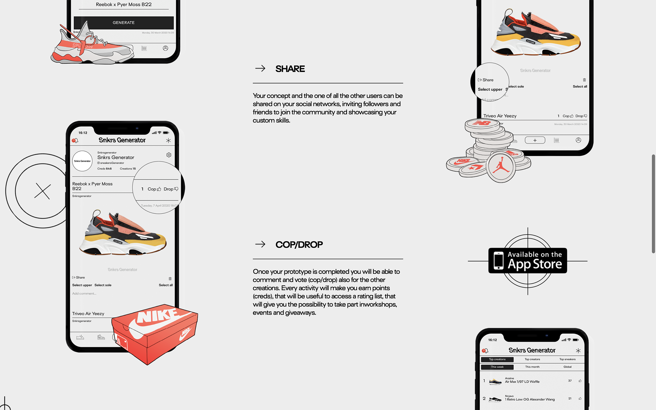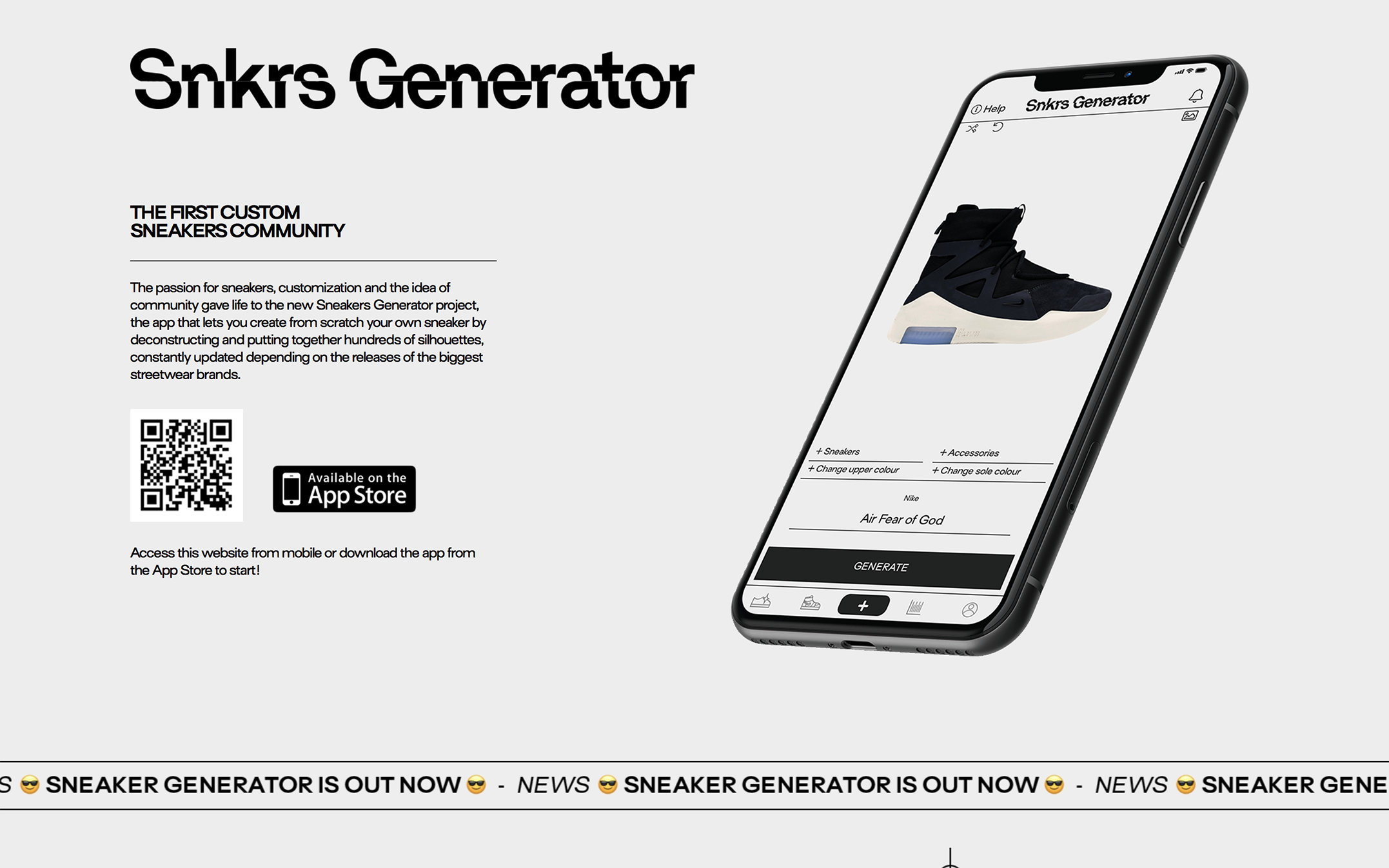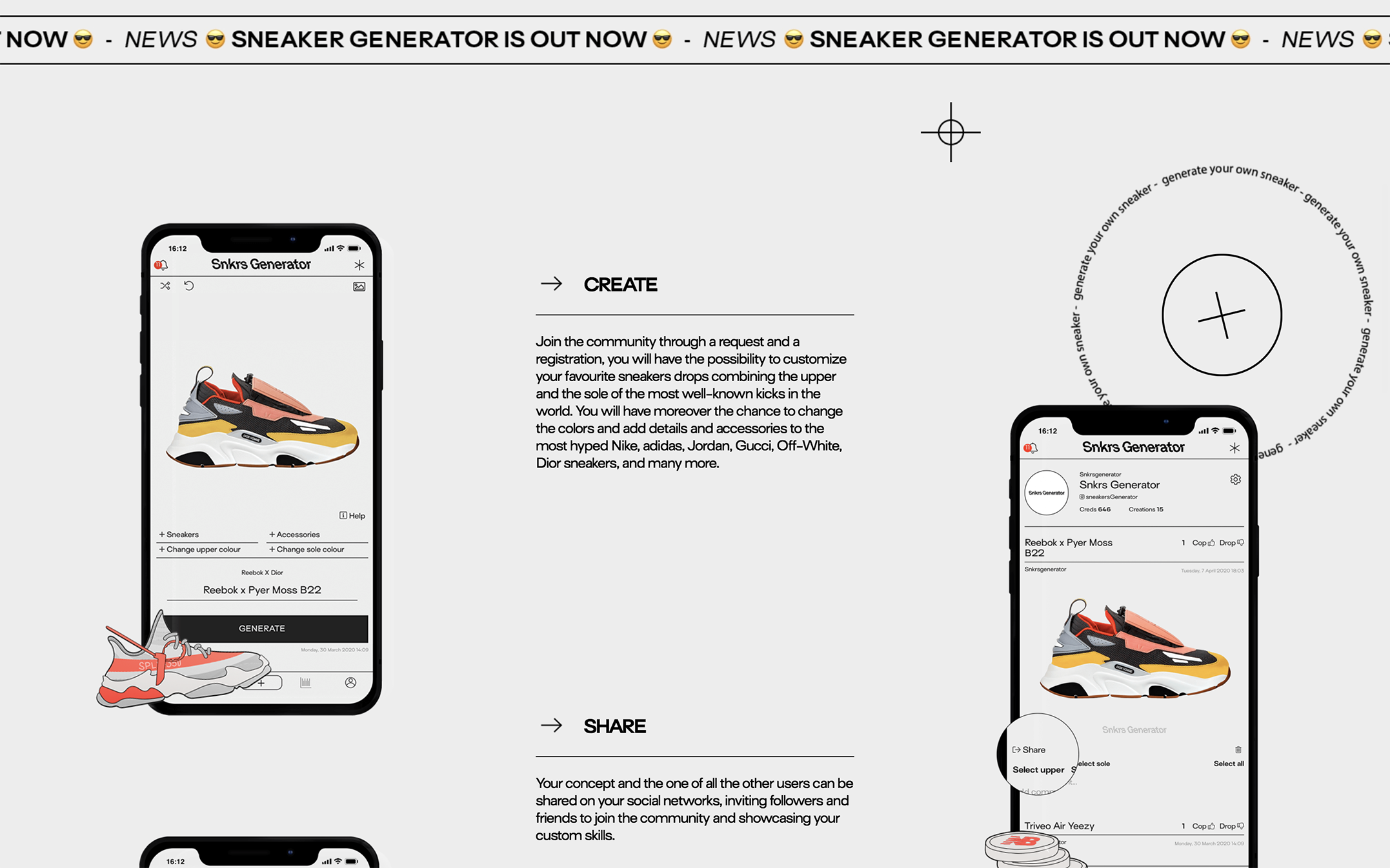 The passion for sneakers, customization and the idea of community gave life to the new Sneakers Generator project, the app that lets you create from scratch your own sneaker by deconstructing and putting together hundreds of silhouettes, constantly updated depending on the releases of the biggest streetwear brands.