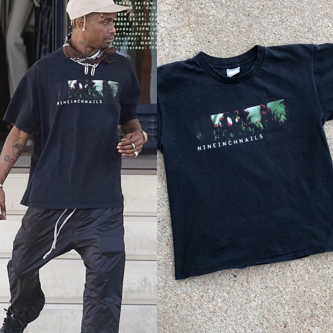 It’s not clear if the shirts were designed by David Carson, who worked with NIN on The Fragile and several other occasions, or by Rob Sheridan, who is credited with the album art for Things Falling Apart (as well as for many of the subsequent releases). The shirts were both manufactured by All Sport Events.