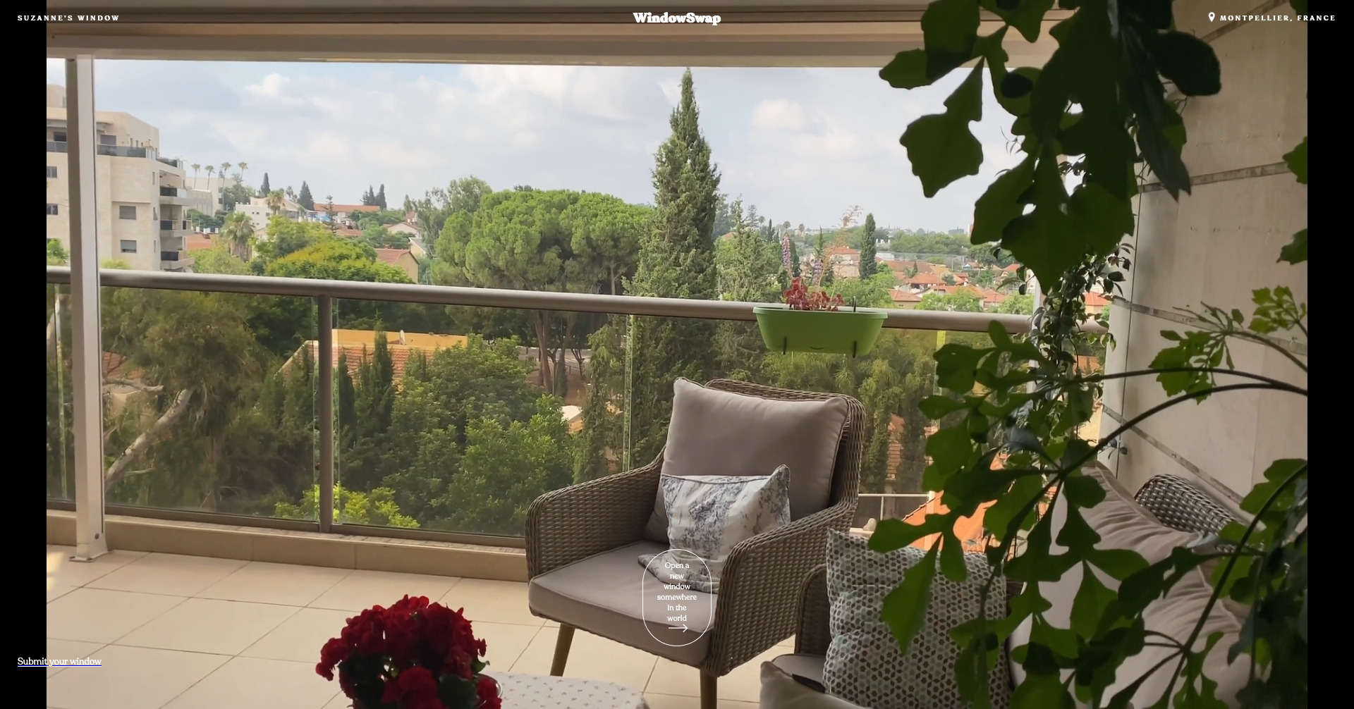 WindowSwap is a website developed by Sonali Ranjit and Vaishnav Balasubramaniam that allows individuals to remotely share the view from their windows. From their about page: