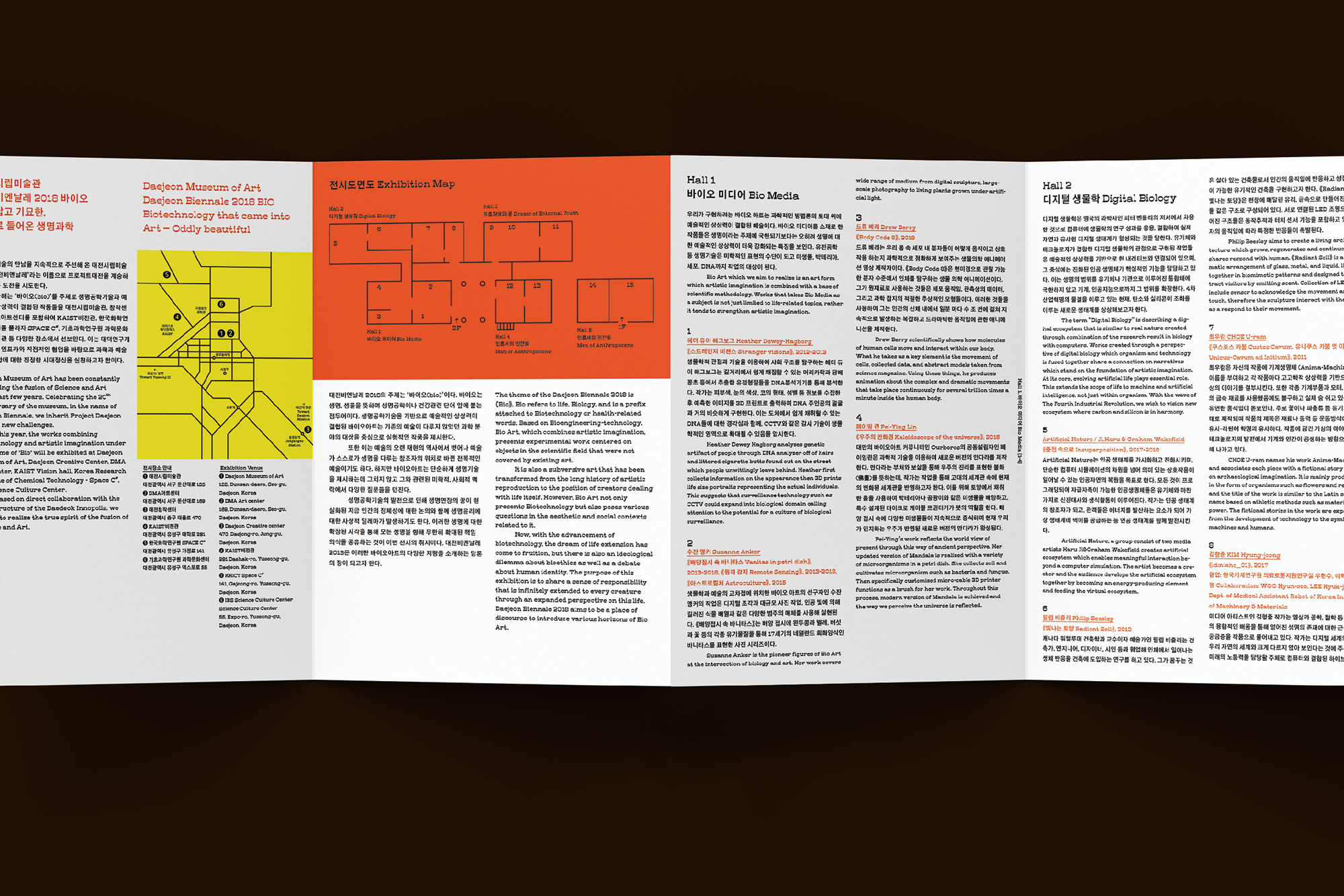 Boogie School Serif was used by Works for the 2018 edition of Daejeon Biennale. The reverse-contrast typeface by Or Type is used for the English text. It’s paired with an unidentified Hangul typeface for the Korean text.