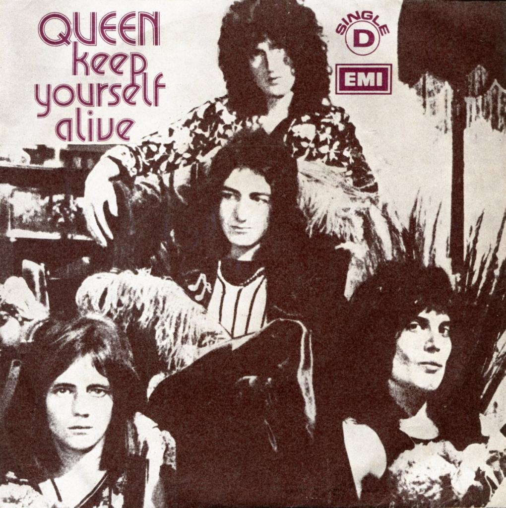“Keep Yourself Alive” is the opening track on Queen’s eponymous debut album from 1973. It was released as Queen’s first single along with “Son and Daughter” as the B-side. This Portuguese 7″ sleeve uses Roy Sprong’s Pinto Inline, which was announced by Mecanorma in December 1972.
