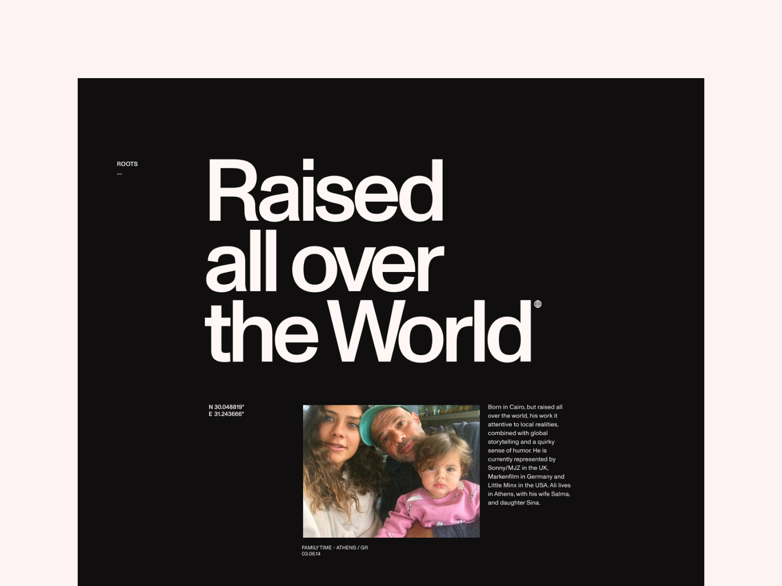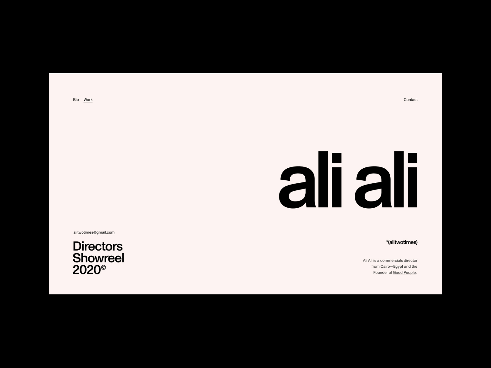 Ali approached us earlier this year to create a unique director’s portfolio that reflects the quality of his work, as well as his strong affinity for minimal design and typography. We are using Monument Grotesk that allows for distinct layout variations and dramatic size contrasts.