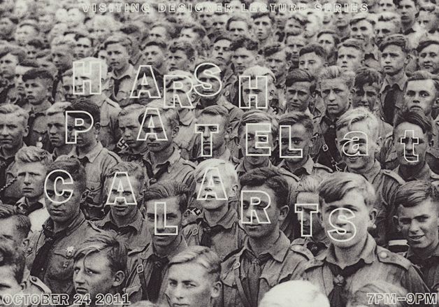 Harsh Patel at CalArts, Oct 24 2011 Contributed by Stephen Coles on Mar 22nd, 2013. Artwork published in 2011. Source: studio.harshpatel.com License: All Rights Reserved. Typefaces More about ITC FranklinGet ITC Franklin Formats Advertising (2153) Posters/Flyers (5875) Topics Event (3291) Graphic Design (3043) Education/Academia (2227) Designers/Agencies Harsh Patel (3) Tagged withoutlined type (1275)lectures/talks (151)CalArts (11)Harsh Patelall caps (7805)type on a face (76)reversed type on an image (1256)black and white (2042) Artwork location United States (10073) California (61) 2 Comments on “Harsh Patel at CalArts, Oct 24 2011” Zolani Stewart says: Mar 23rd, 2013 6:29 pm This is kind of awful. You can barely see the type, and I don’t understand the point of the photo. Everything about this is so off in the worst way. Lickey Louse says: Mar 28th, 2013 6:36 am Zolani: This kind of “awful” is perfect for the Cal Arts crowd. And what a crowd Patel has chosen, eh? What’s he saying about the audience for his visiting lecture? Cheeky. Post a comment Name Email – will not be published Website Your response Submit Comment More ITC Franklin in use Build2013Modus Operandi DesignPatrick MitchellAshley Bond O’BrionContributed by Stephen Coles Staff Pick GEO Epoche No. 89, “The Inquisition”2018Tatjana LorenzEva MitschkeSamson J. GoetzeContributed by Florian Hardwig Side Effects Movie Poster2013Neil KellerhouseContributed by Stephen Coles Sponsor More in Event Pitchfork Music Festival, 2013 (Announcement)2013Michael RenaudPitchfork MediaContributed by Letters from Sweden Staff Pick 2013 Pitchfork Music Festival App2013Michael RenaudPitchfork MediaContributed by Letters from Sweden Staff Pick VendrediXXLc. 2025Eric SchwarzContributed by Eric Schwarz Gdynia Literary Prize 20232023TOFU StudioContributed by Daniel Naborowski More in Posters/Flyers Baobab restaurant branding2015TropicalContributed by Nick Sherman Staff Pick East London Dog Communityc. 2024Giulia BoggioContributed by Frederick Wiltshire Dillistone tour visuals 23/24c. 2023Julian GrönbergSimbayu StudiosContributed by Julian Grönberg Flora short film by Omer Dolev2022Ron R. LevyContributed by Matan Iontef More Fonts In Use The Boston Globe2008Contributed by Font Bureau Staff Pick Chocolate FactoryRuiz + companyContributed by Indra Kupferschmid Staff Pick Melly’s Cookie Barc. 2012Floor WesselingFran MéndezStudio WesselingContributed by Florian Hardwig Staff Pick Alexander Girard Memory Game (AMMO Edition)2012Gloria FowlerContributed by Stephen Coles Staff Pick