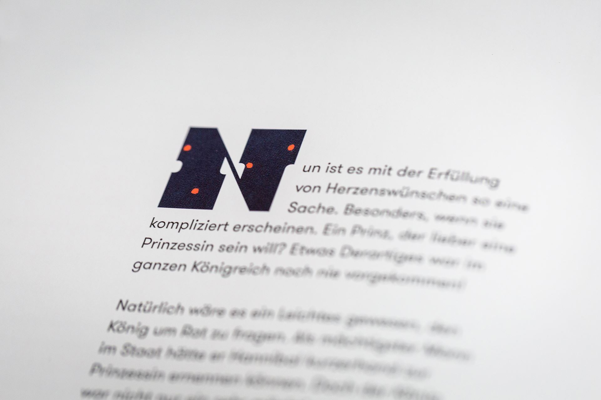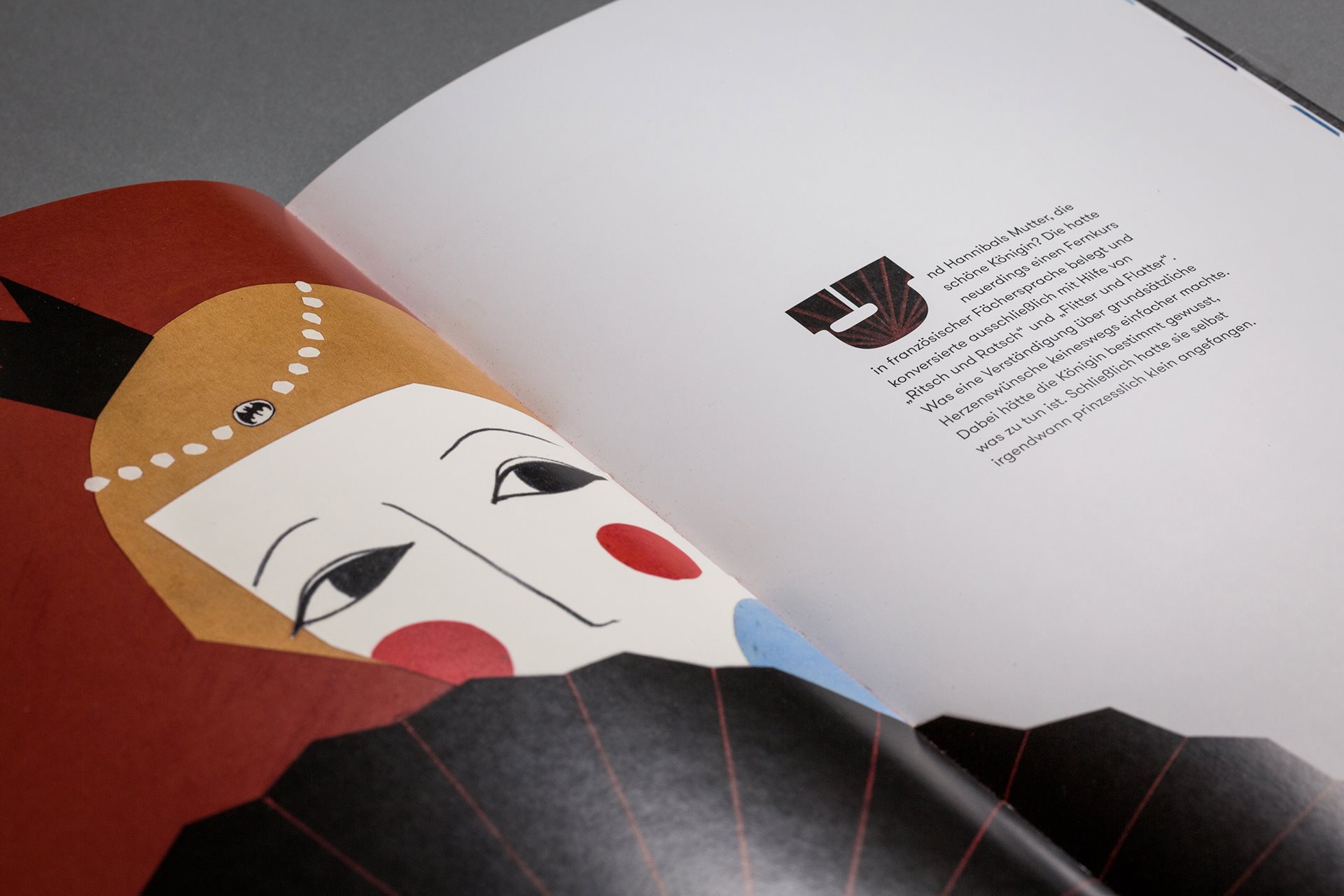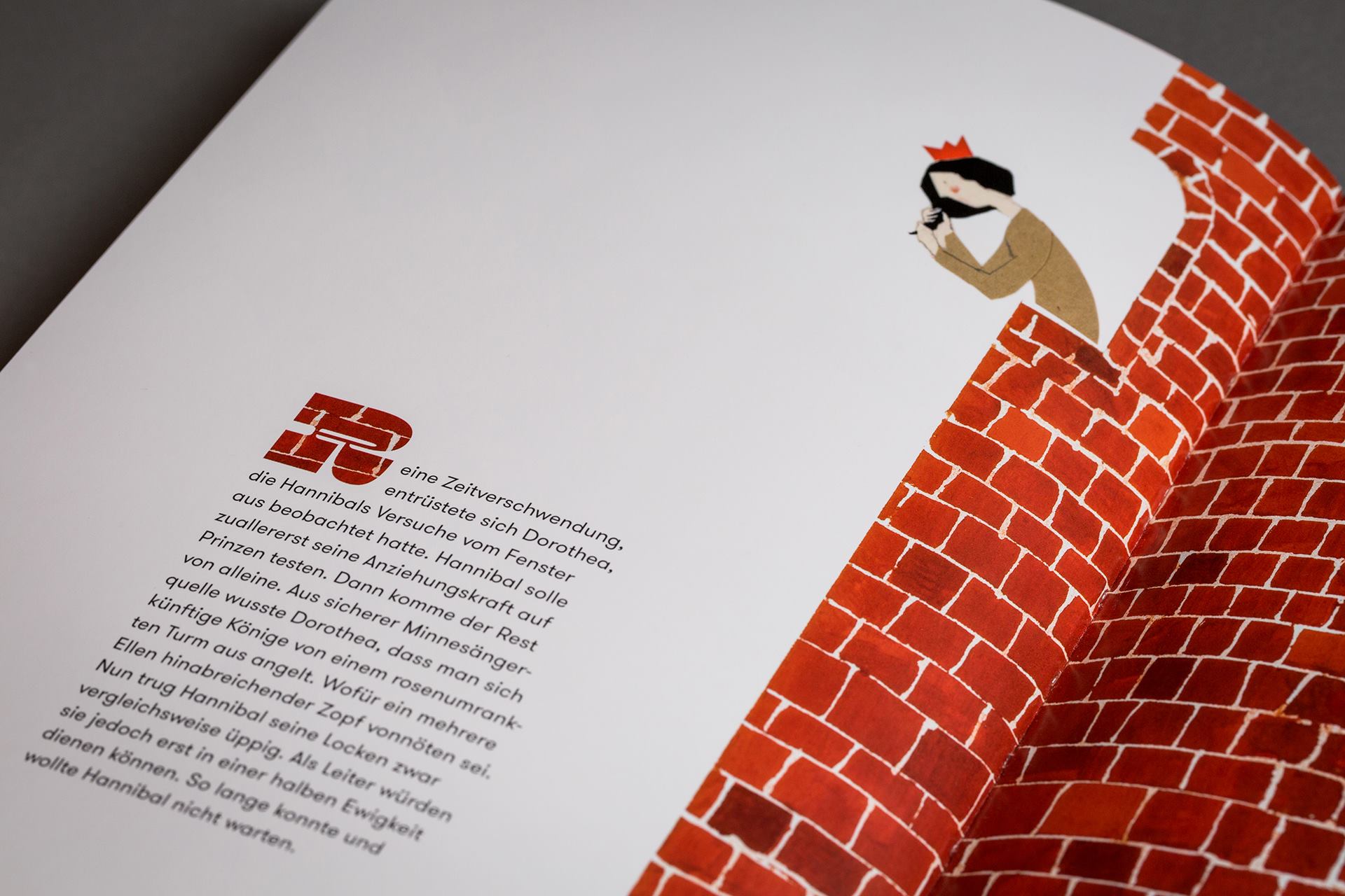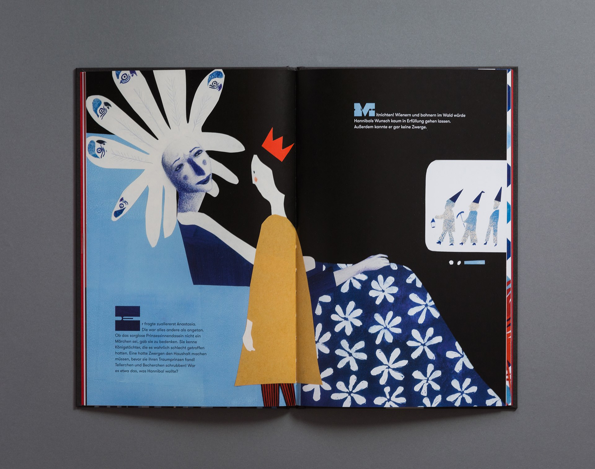 Matthias Kronfuss Studio was commissioned to create the typographic concept for Prinzessin Hannibal, a children’s book by Melanie Laibl and Michael Roher. Playful and quirky drop caps, set in Oposta, complement Michael’s bold collage illustrations about a prince who’d rather be a princess. The geometric sans serif GT Walsheim is used for the text. The book was published by Luftschacht Verlag in 2017.