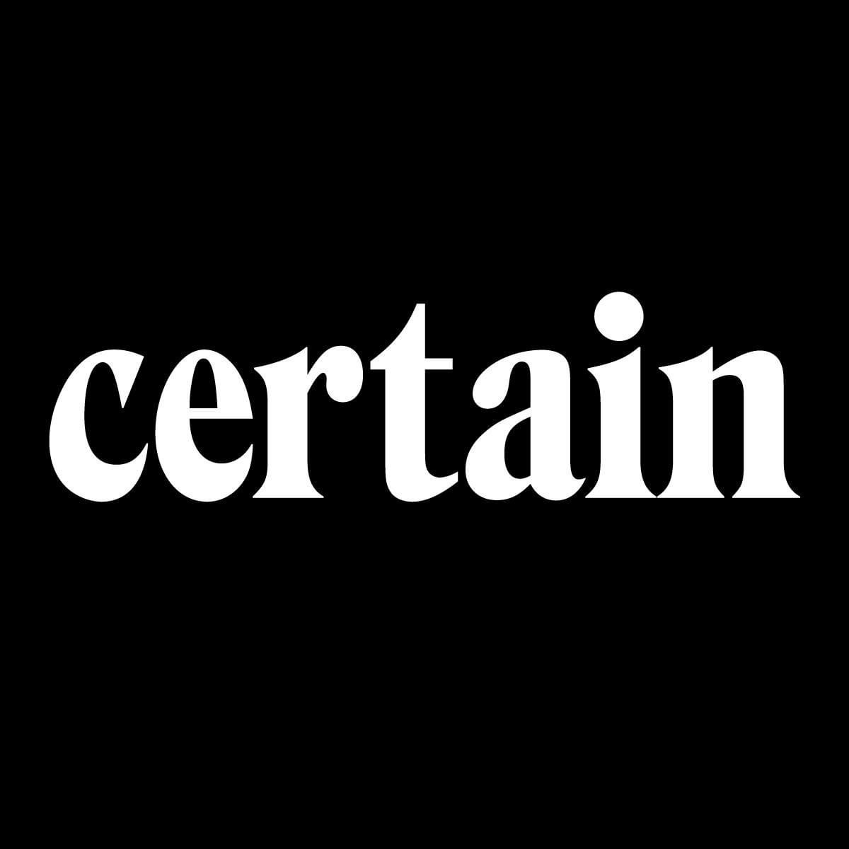 Lowercase Maythornin use for the logo of Certain Magazine: an independent curatorial brand aiming to portray contemporary aspects of graphic design and to highlight selected design projects from around the world.