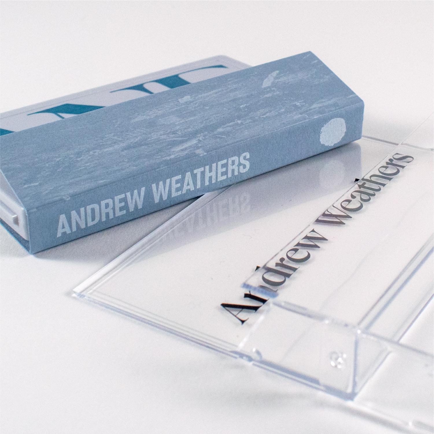 Andrew Weathers’ AW Solo Album was issued in a hand-numbered edition of 100. C50 imprinted cassettes were assembled and dubbed in real time at home by William Csorba. Graphic design and creative direction by Matthew Boteilho. Cover photo by Lindsey Milller. Printed locally in Houston, TX with dry white ink using a Kodak NexPress onto Mohawk Keaykolour Steel. Recorded in Littlefield at Wind Tide by Andrew Weathers. Mixed by Seth Chrisman at Cloud Nest in Trivoli, NY.