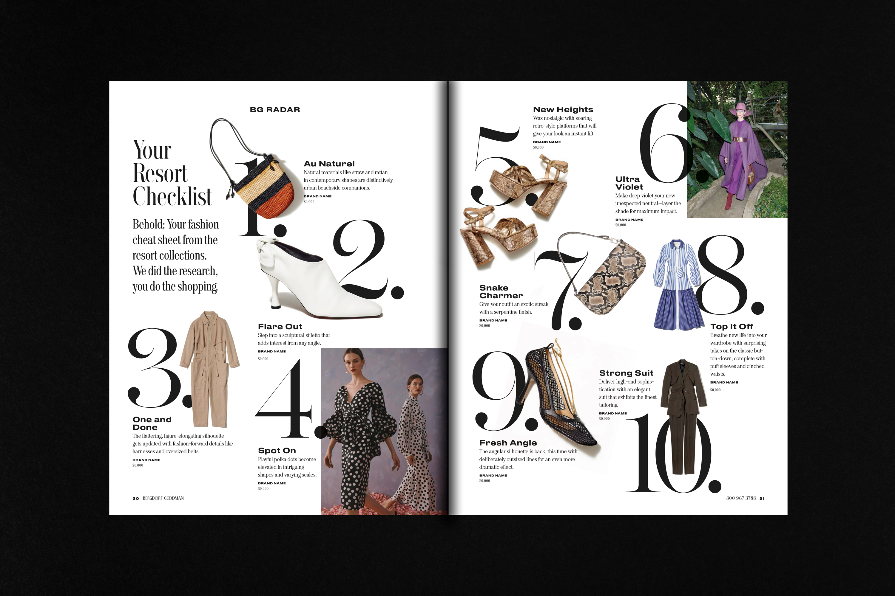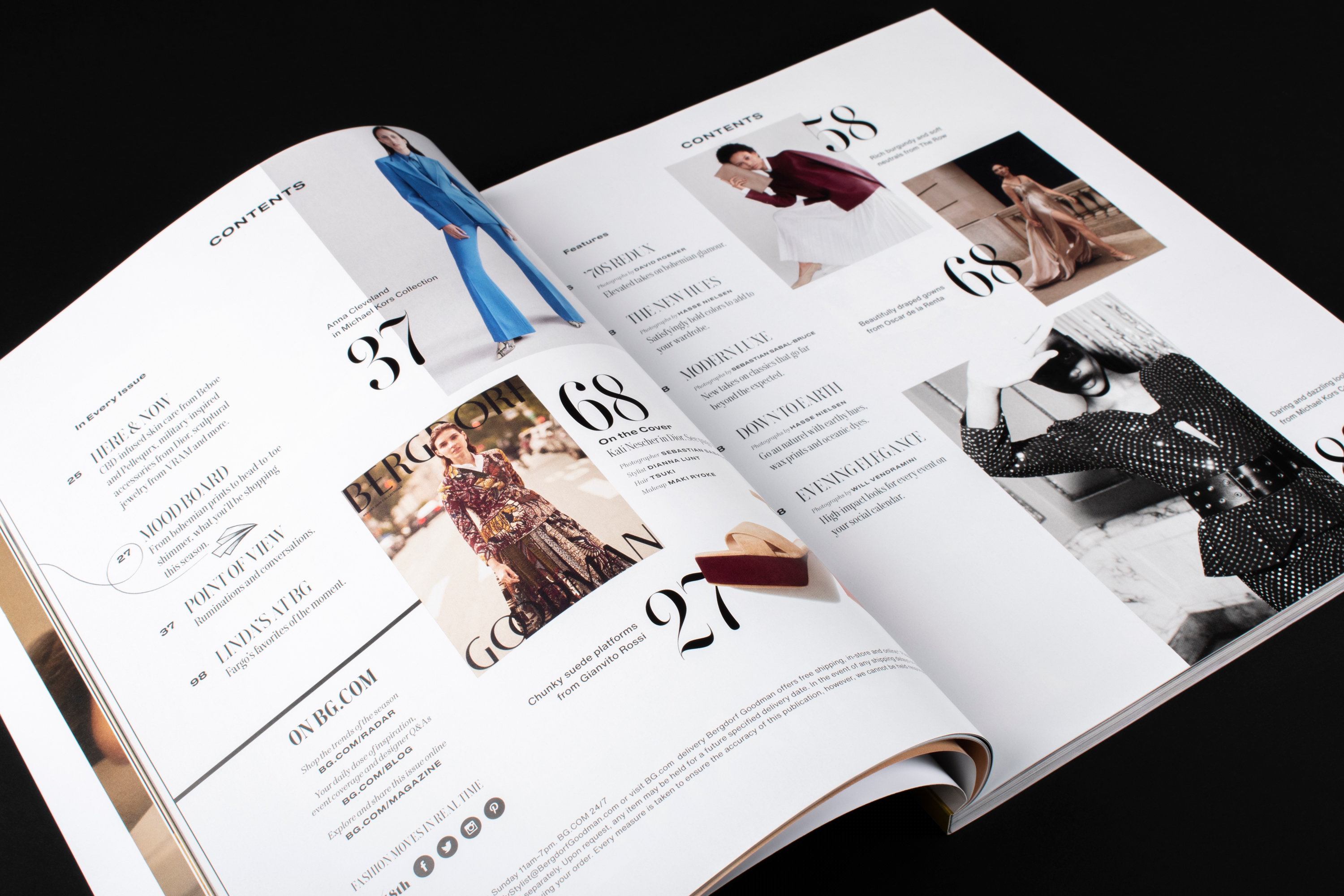 Editorial design for the Resort 2019 issue and the Holiday Guide for warehouse Bergdorf Goodman, led by design director Elina Asanti and senior designer Stefanie Brückler for NR2154. The typography uses the complete set of DSType’s Keiss typefaces both for text and headlines, along with a few weights of Druk Wide and Druk Text Wide.