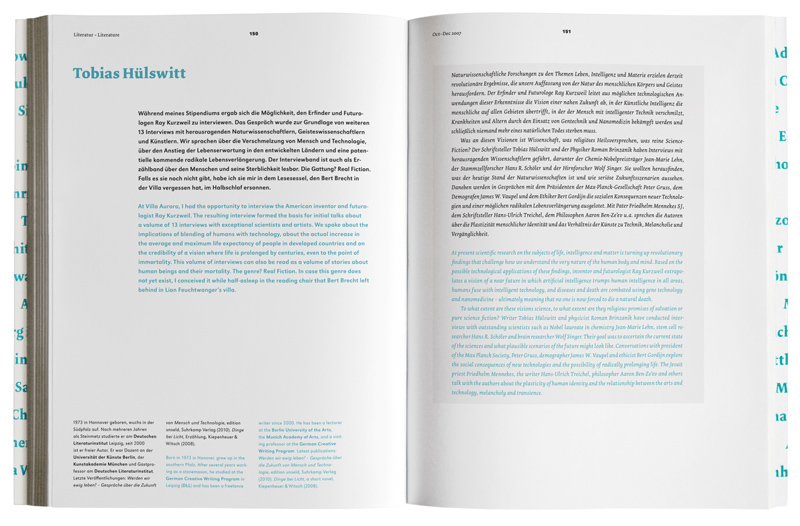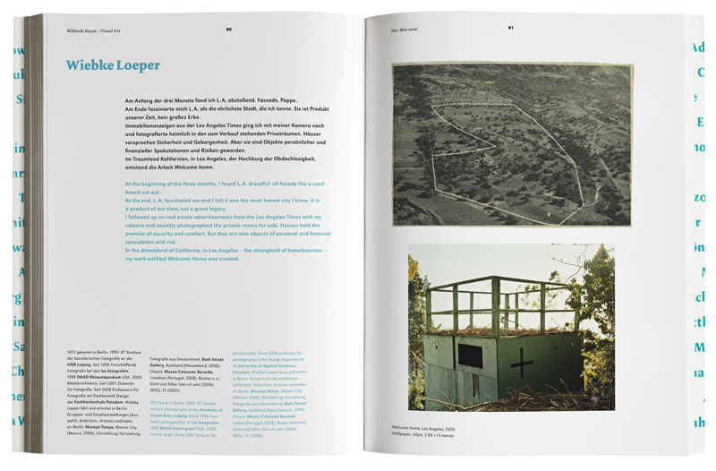 The Villa Aurora is an artists’ residency and international meeting place, fostering German-American exchange with fellowship programs in the fields of literature, music, art and film. In 2010 they had their 15th anniversary which was celebrated with an exhibition in the Academy of Arts Berlin and the release of this catalogue featuring the grant recipients of the last five years.