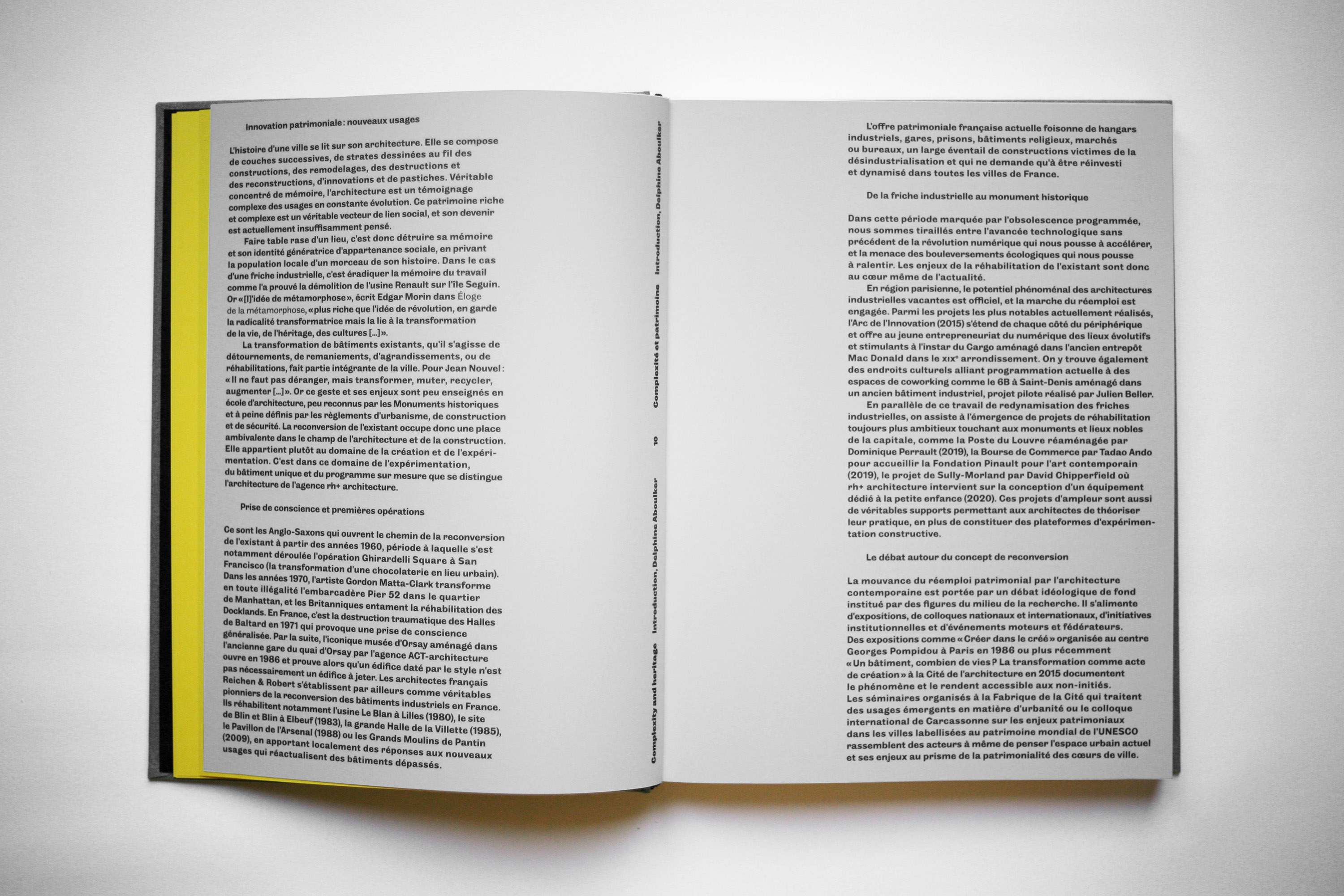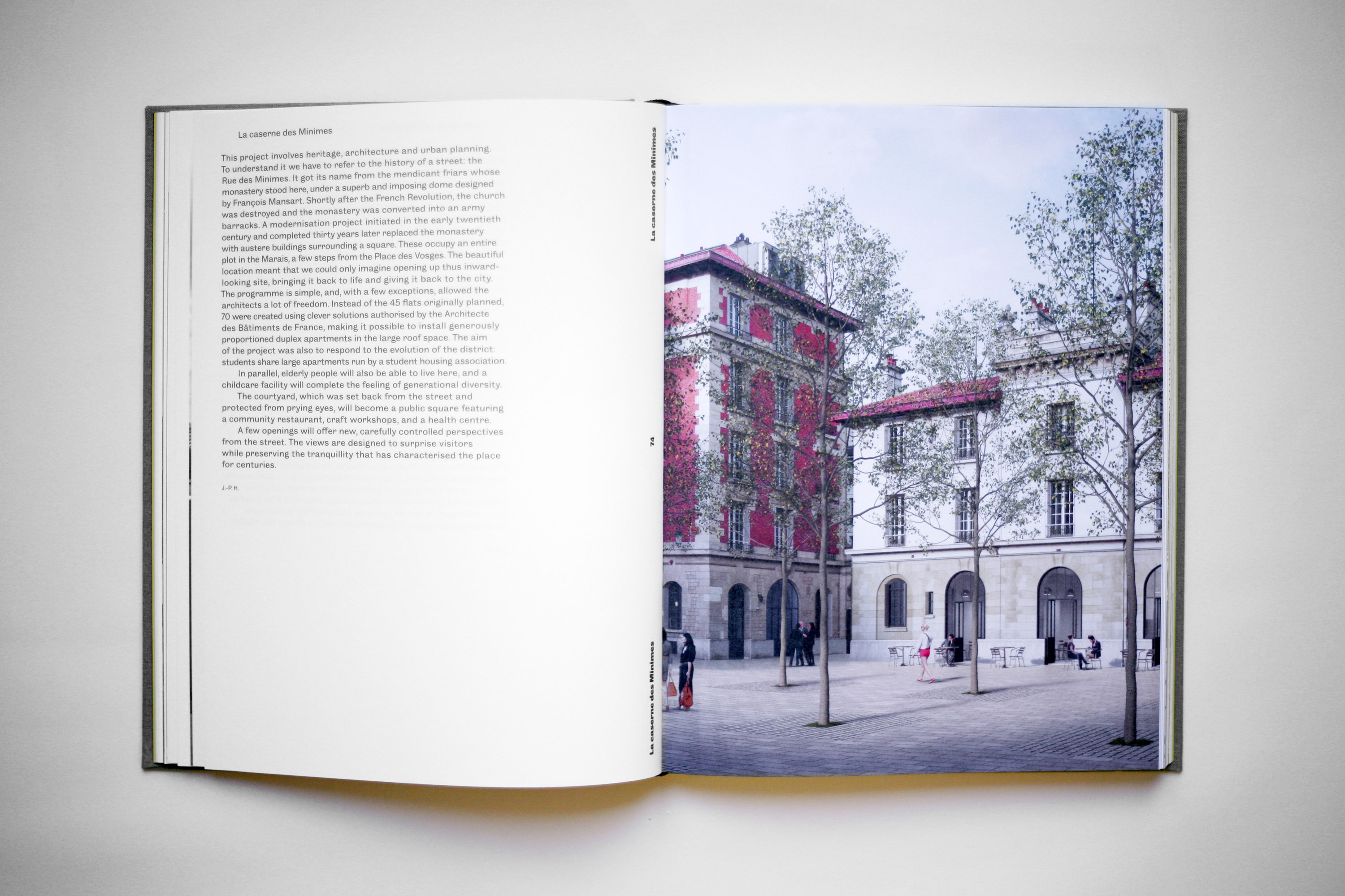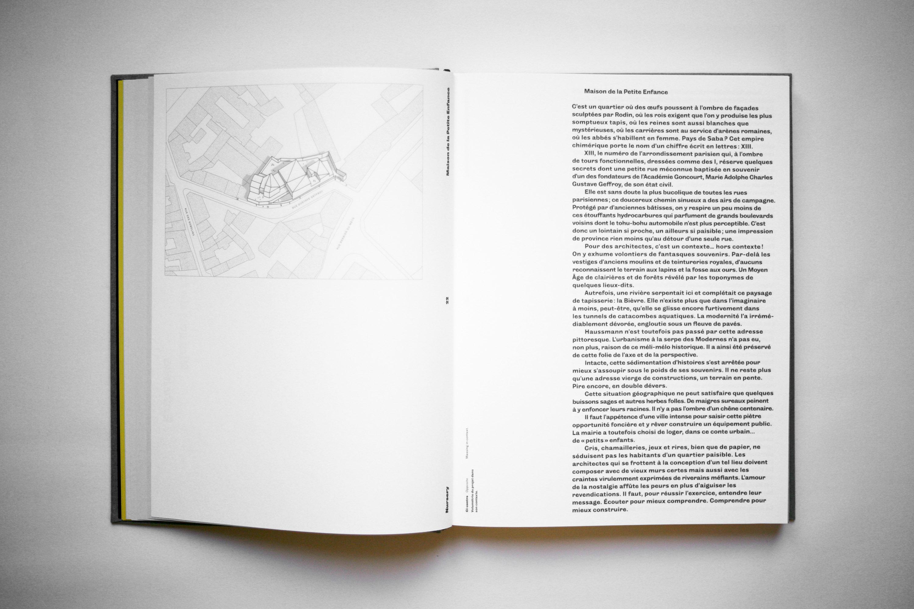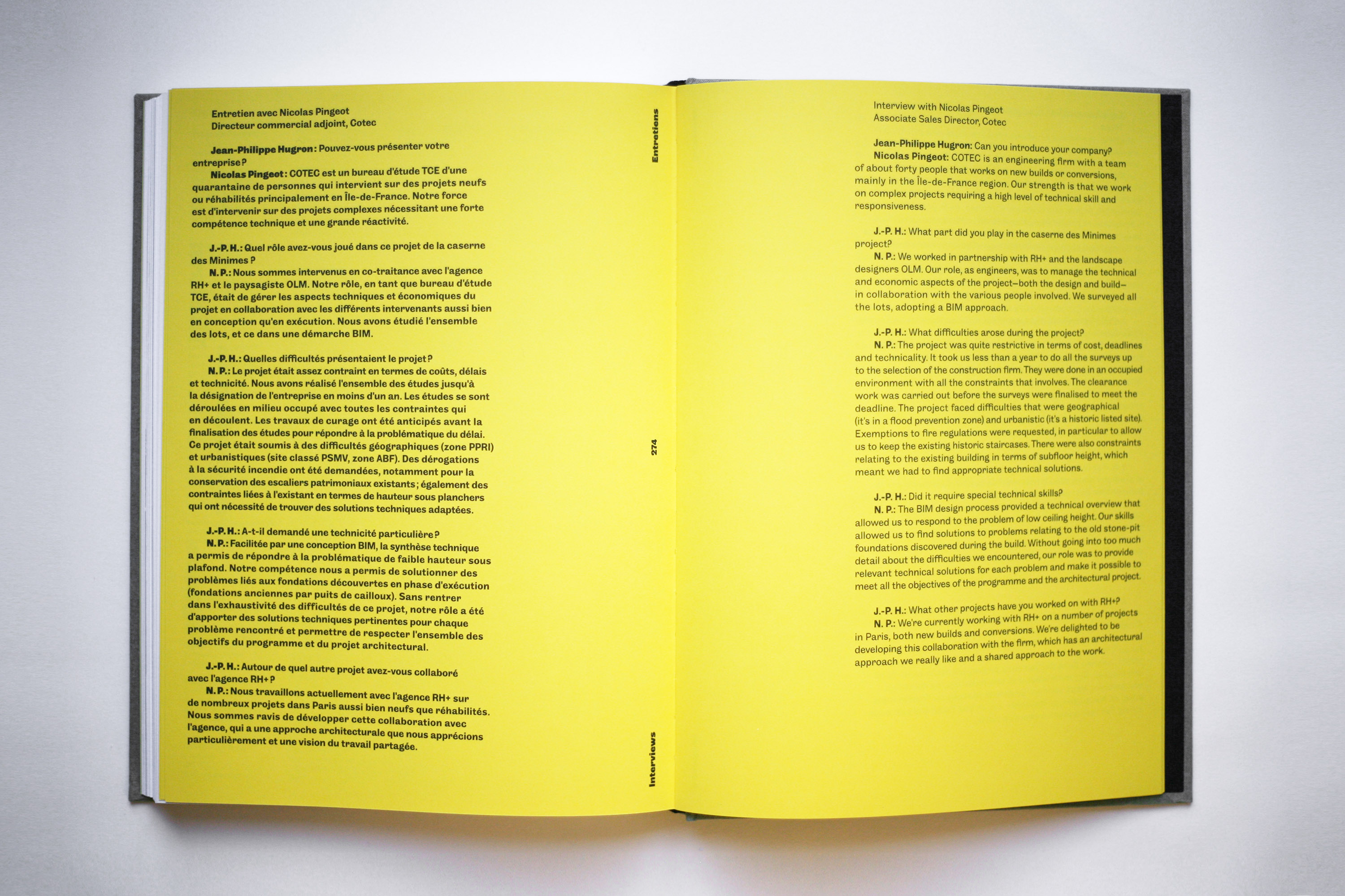 Only one typeface, Grotesque 6, in 3 weights, in use for this monograph about Alix Héaume and Adrien Robain of rh+ architecture. The bilingual book (French/English) was designed by French graphic designer Mahaut Clément and published by Éditions Archibooks. Format: 22×29 cm, 288 pages.