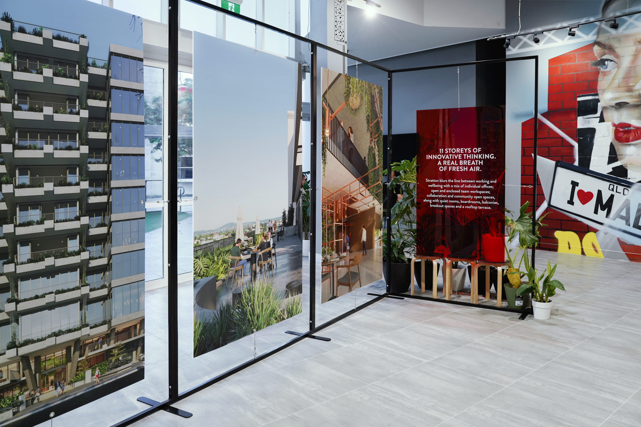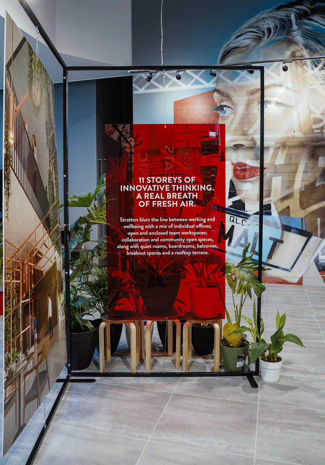 Commercial building brands are traditionally … conservative, crisp, understated, and … a little expected, blue, Akzidenz-Grotesk-ish. They often say more about the owners than they do about their prospective tenants. Stratton wanted to shake that up, to be the antithesis of the old corporate world – to be the workplace for the movers and shakers, the start-ups growing fast, the boutique businesses who wanted to work differently and were looking for premises that mirrored their ambition.