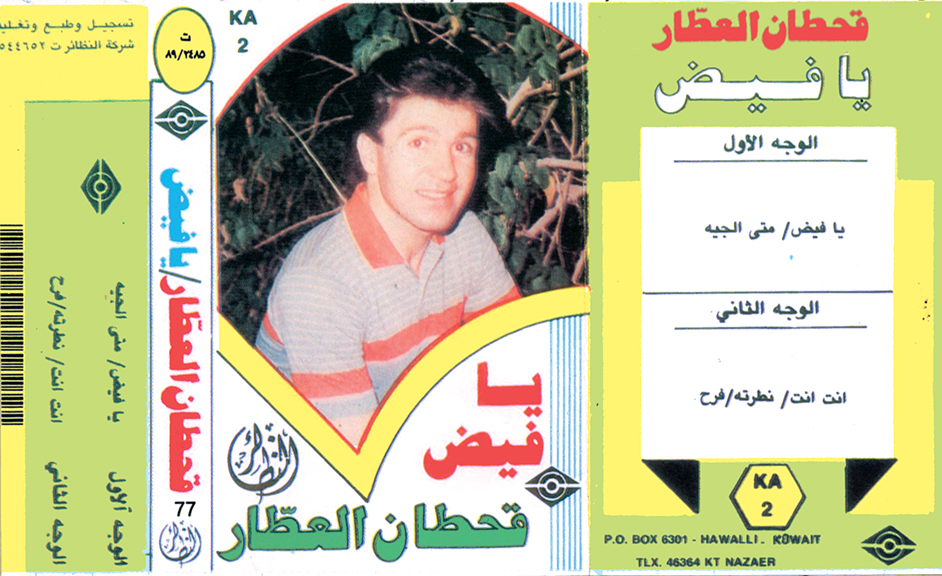 An early release by Iraqi singer Qahtan al-Attar. According to Apple Music the album was released in 1978, but according to Linotype the display font family used here—Al-Harf al-Jadid —didn’t appear until 1980, so we must doubt that this is the original album art. No designer is credited.