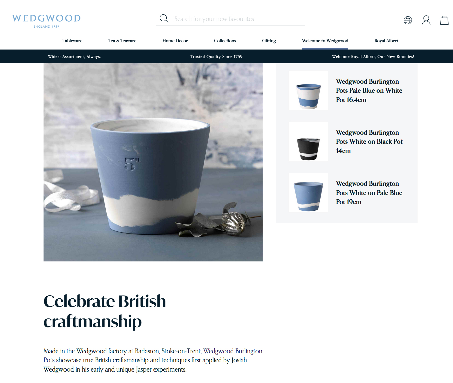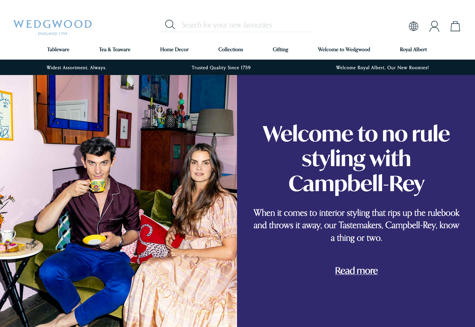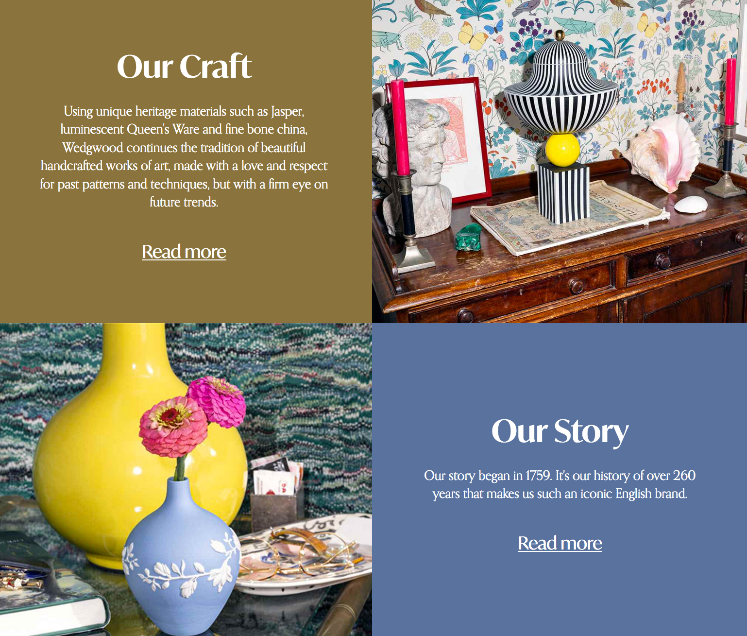 Wedgwood is a fine china, porcelain, and luxury accessories manufacturer, crafting timeless luxury ceramics since 1759. Wedgwood is, as they say, “fuelled by creativity, self-expression, humour and lots of tea”. They use IvyMode for headings and Orpheus for text.