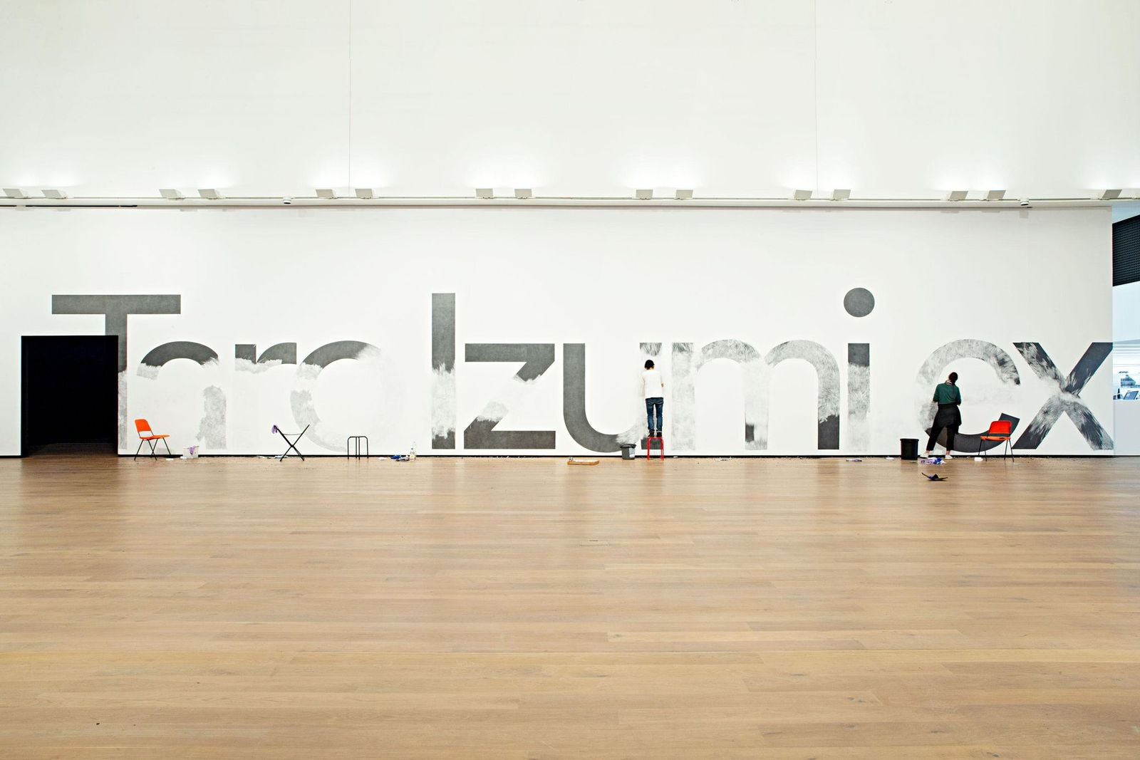 As a part of his overview exhibition Taro Izumi. ex in the Museum Tinguely in Basel, artist Taro Izumi and his team drew – and erased – 9,000 point size letters of LL Circular with lead pencil. From the website of the newspaper Bote der Urschweiz (translated):
