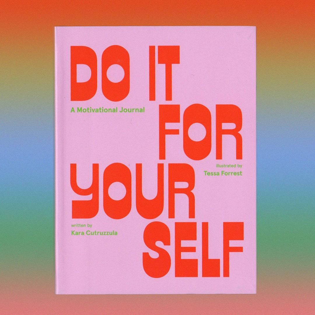 Do It For Your Self is a motivational journal written by Kara Cutruzzula and published by Abrams Noterie. Illustration and design by Tessa Forrest, aka Subliming, with a colorful ’70s style and bold typography.