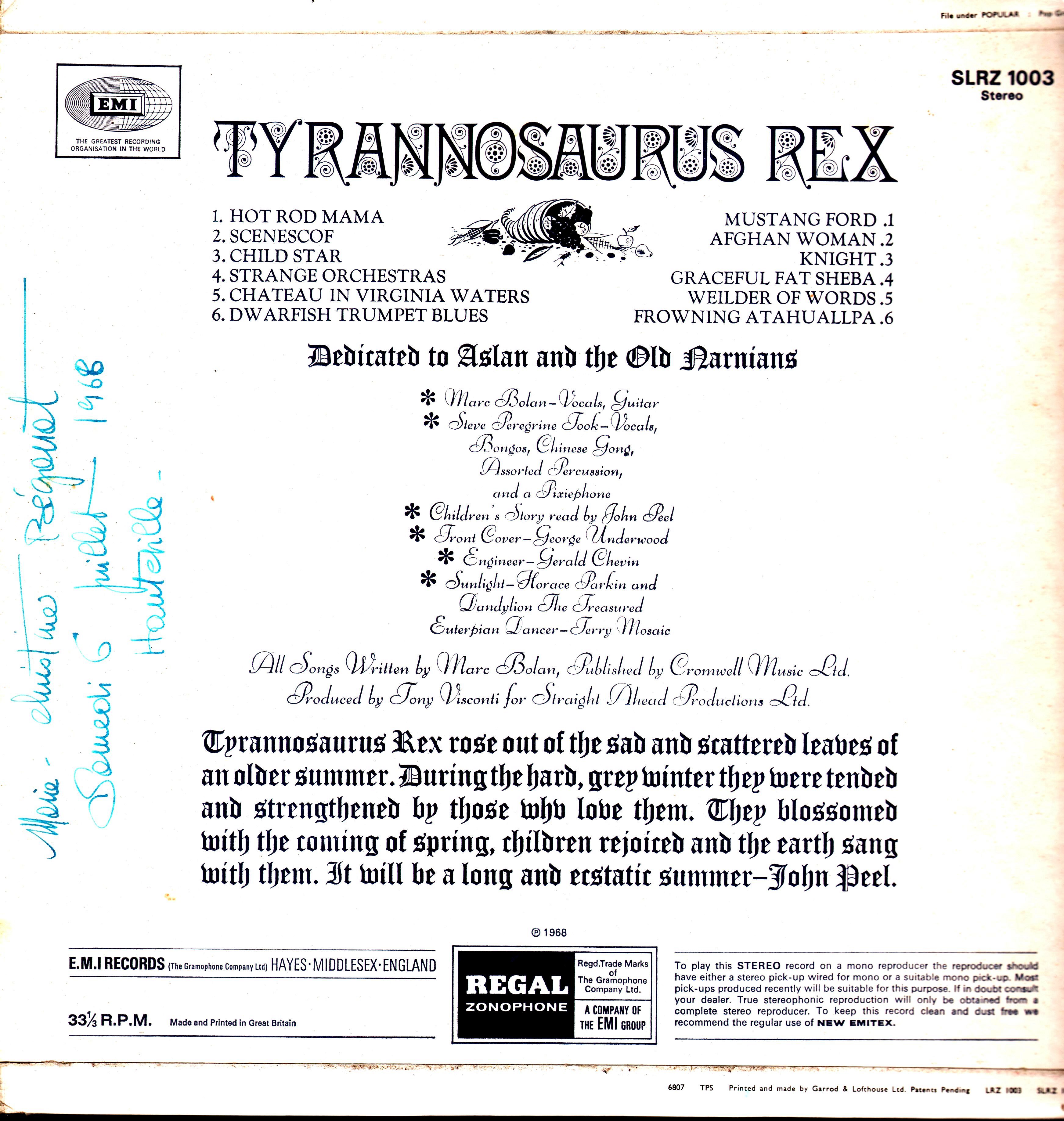 The debut album by psychedelic folk band Tyrannosaurus Rex (later known as T. Rex) was released on 5 July 1968 by Regal Zonophone.