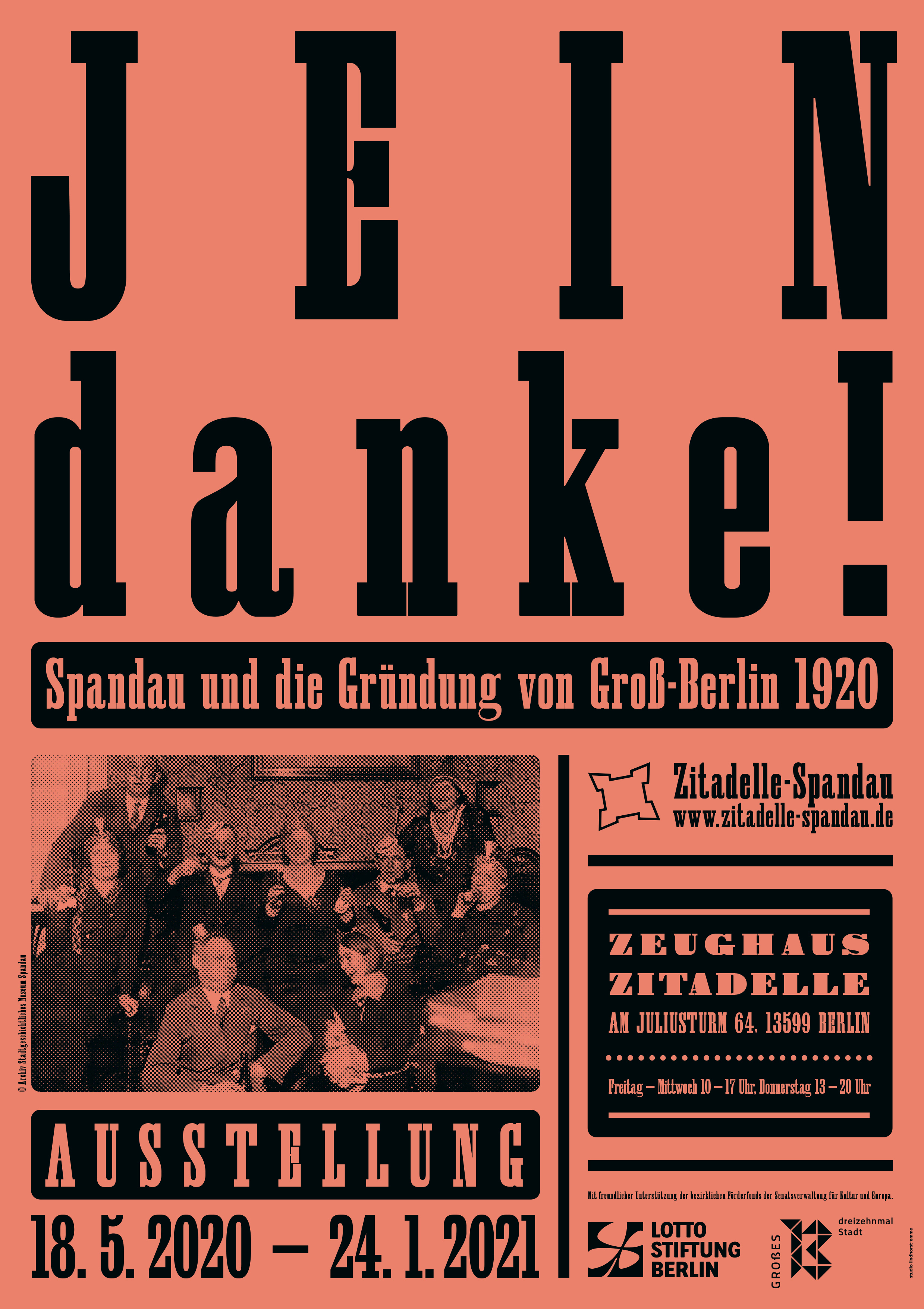 One hundred years ago, the formerly independent city of Spandau became a borough of Berlin, as part of the Greater Berlin Act. An exhibition at Zeughaus Zitadelle commemorates this administrative change and shows how it affected the Spandauer identity. The ambivalent, partly reluctant attitude of the local citizens towards the incorporation is reflected in the title, Jein danke! (“yes and no, thanks”).