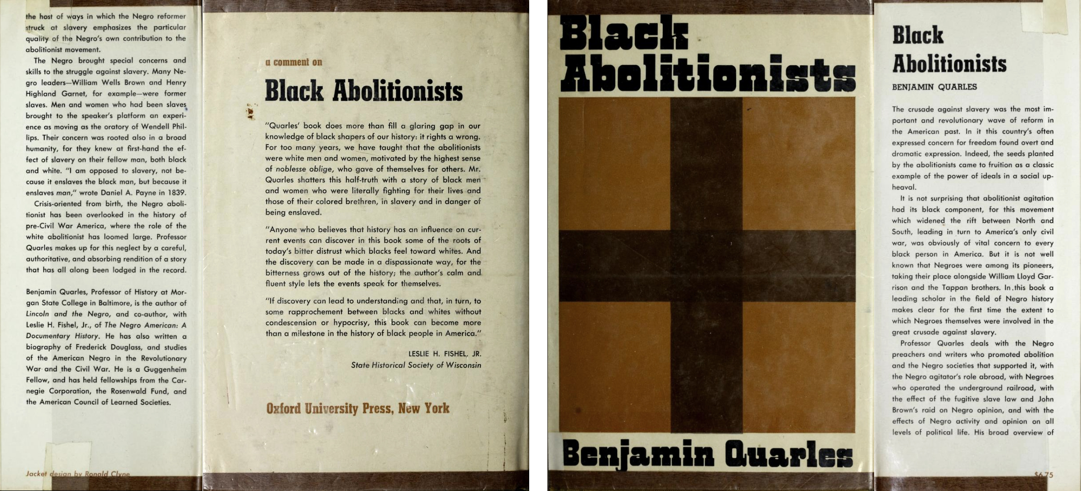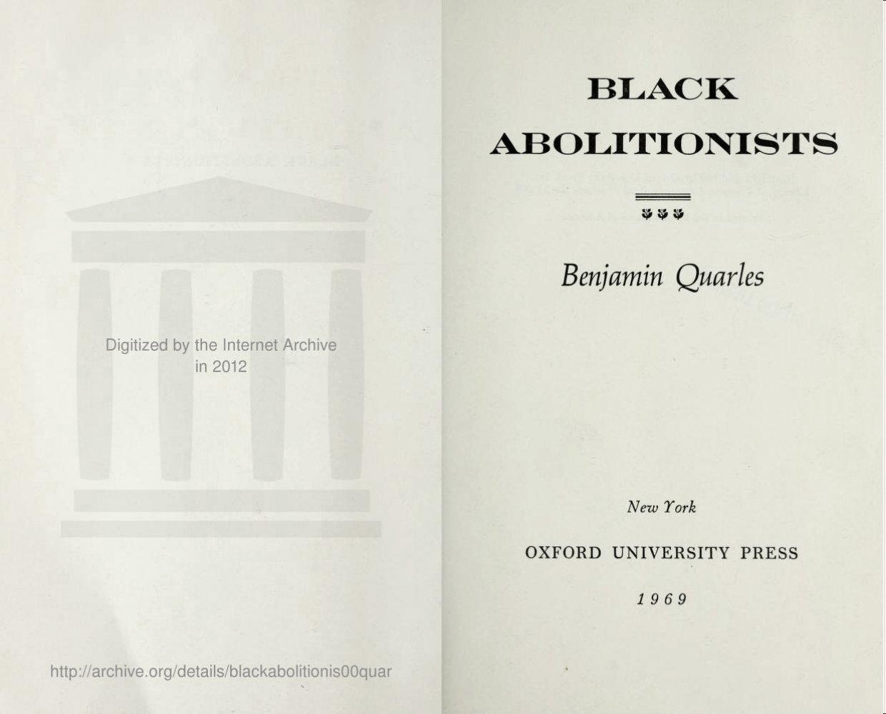 Black Abolitionists is a book by Benjamin A. Quarles (1904–1996), one of the foremost authorities on African-American history. It was first published by Oxford University Press in 1969, with a jacket designed by Ronald Clyne.
