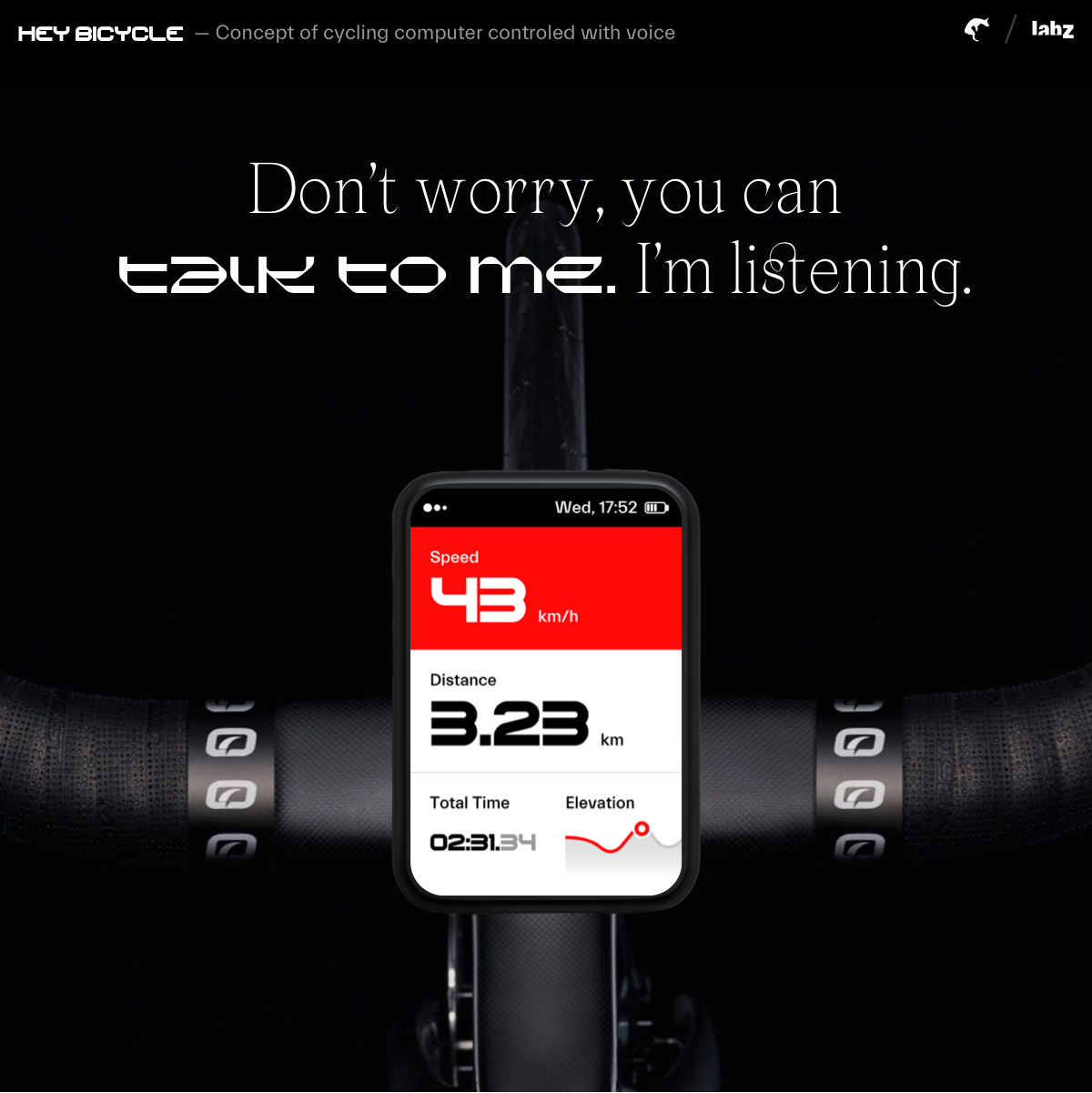 Hey Bicycle is a design case study of a cycling computer controlled with a voice interface for outdoor and indoor workouts. The device records your rides and measures speed, power, climb, cadence and heart rate. It tells you when your training is effective, and how, as well as when, it’s time to take a break. Voice assistant is in the centre of the user experience. UX is the crucial part of our thinking. We designed the uncluttered system with just the right amount of information.