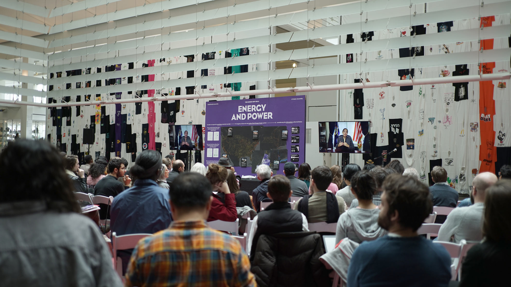 The Green New Deal: A Public Assembly focused on modeling democratic debates that seriously consider the ambitions and challenges of the GND by thinking systemically and across scales.