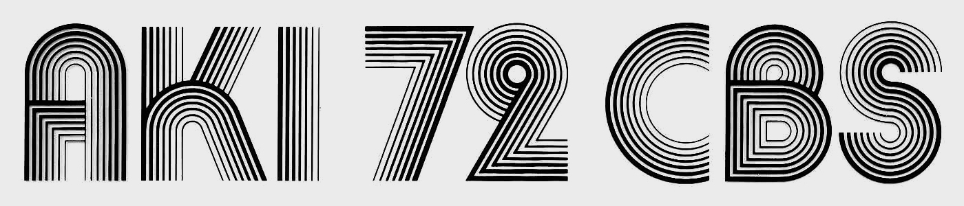 The overlapping numerals “72” appear on the kit shown above as well as in the animated title sequence for the CBS News live coverage of Election Night ’72 hosted by Walter Cronkite. They feature multiple lines of increasing stroke width, just like Aki Lines. While they have eight lines, the typeface has seven. I’d assume that the pattern was slightly simplified once it had to be applied to a full character set. So maybe this isn’t Aki Lines yet, but a prototype. If you happen to know more about Akihiko Seki and his Aki Lines, I’d love to hear about it.