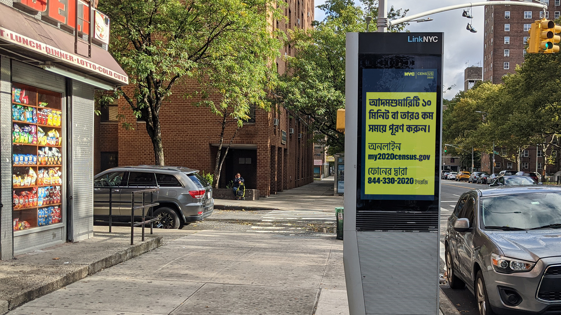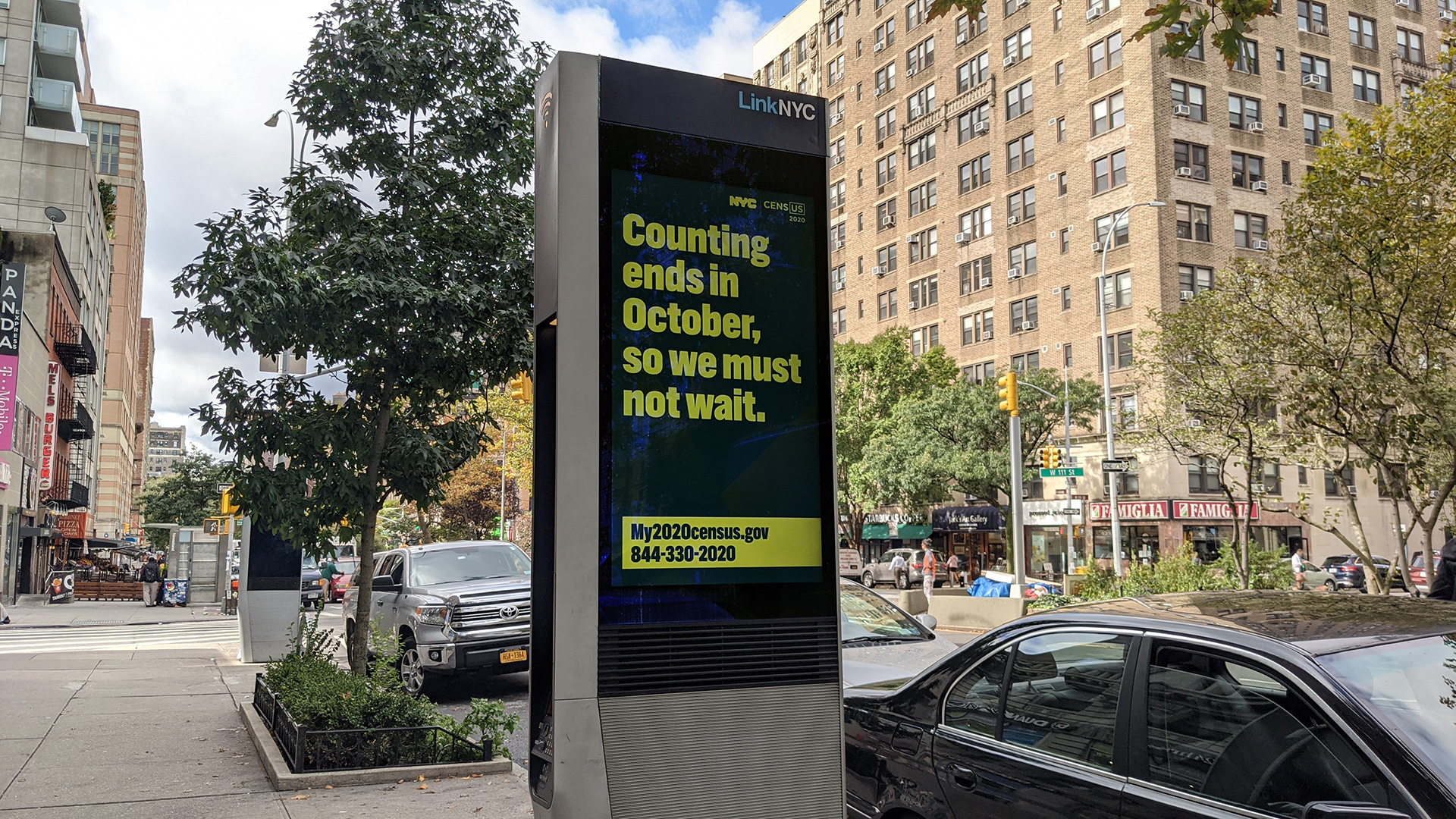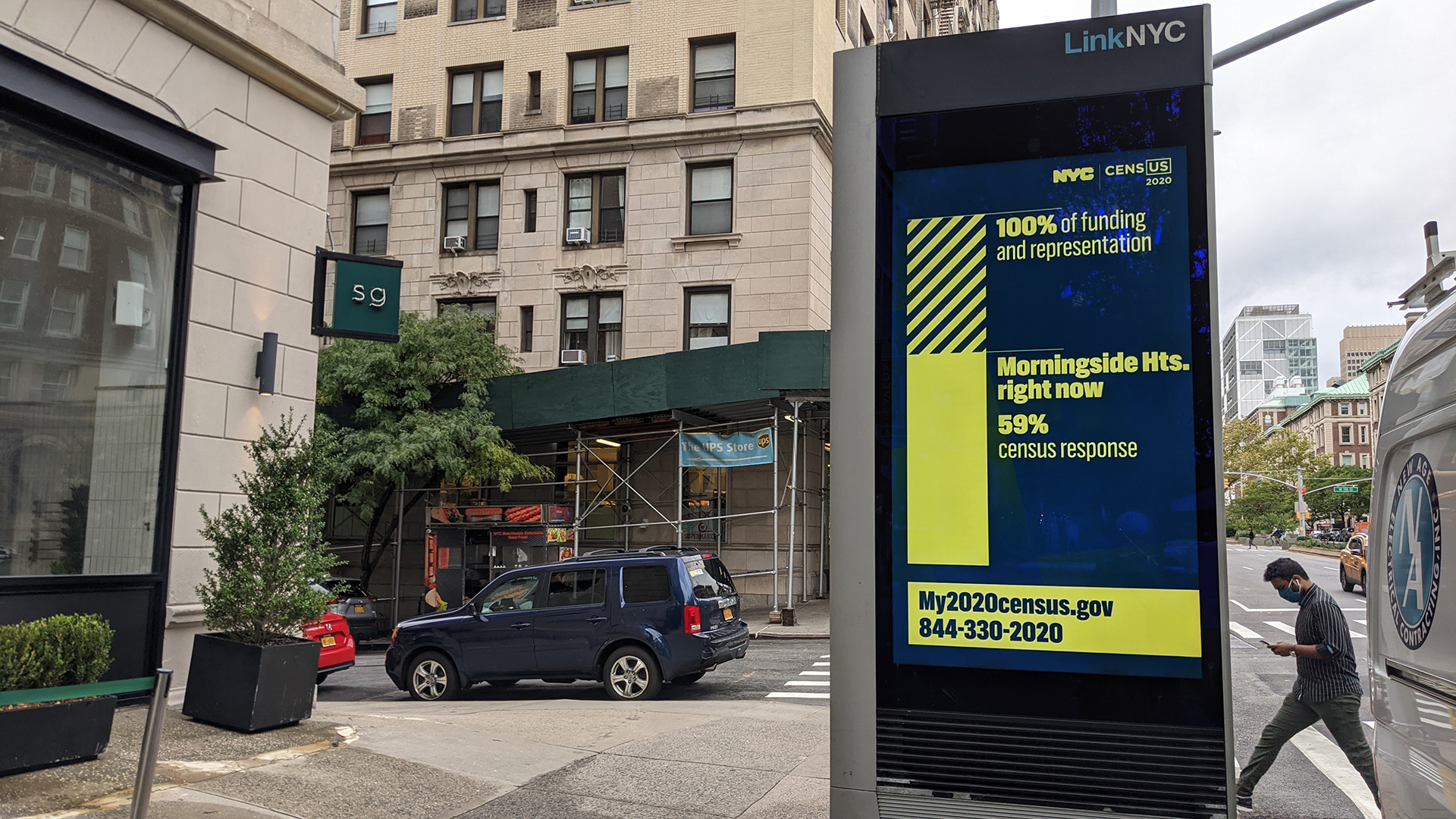 Many of the neighborhoods targeted by the LinkNYC messaging showed promising upticks in self-response, so the campaign was adapted for large-scale projection in Manhattan and neighborhood-specific web banners reaching New Yorkers across all boroughs.